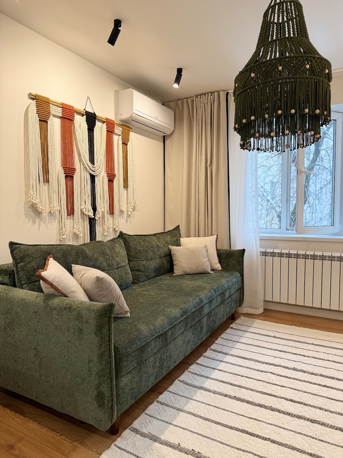 A 2 pasos de la estación de metro de Alatau. Sin tráfico, es conveniente llegar a las principales ubicaciones, incluido el centro histórico. Y después de caminar, encontrarás 64 metros cuadrados de comodidad, limpieza y placer estético con una lujosa vista panorámica. Lugar perfecto en Almaty para admirar las montañas e ir a conquistarlas. Una zona de estar con una silla colgante te ayudará a relajarte después de la carretera. Una zona de trabajo con vista de pájaro a la ciudad. Internet de hasta 500 Mbit Un dormitorio independiente con una cama cómoda y enchufes cerca:)