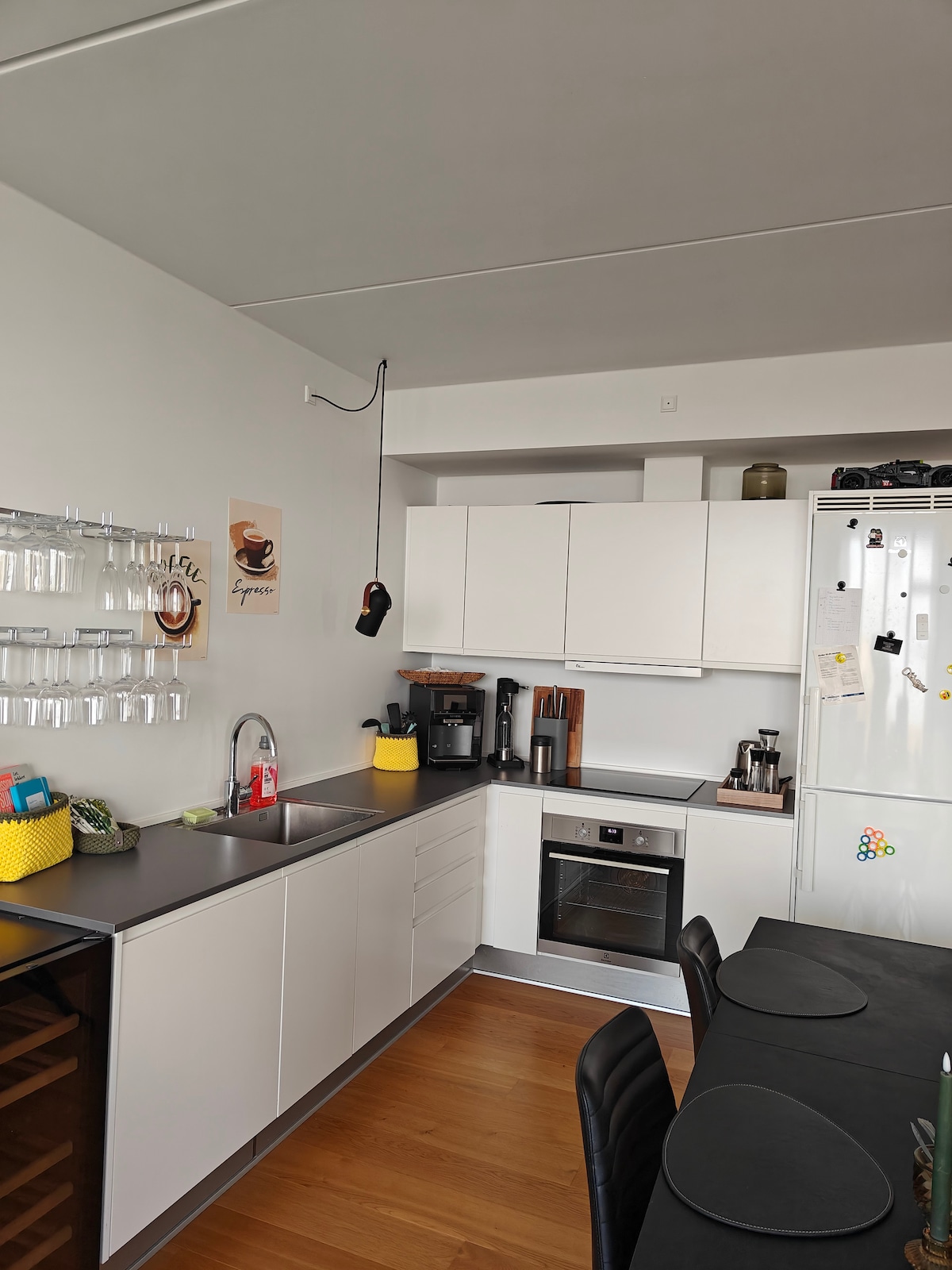 Enjoy stunning views of Kolding Fjord from this bright 110 m² first-floor apartment in a charming white patrician villa. Features 2 double bedrooms, a large bathroom, cozy living room, and a fully equipped kitchen-dining area with access to a private terrace with sun loungers. We live quietly on the ground floor and respect your privacy.