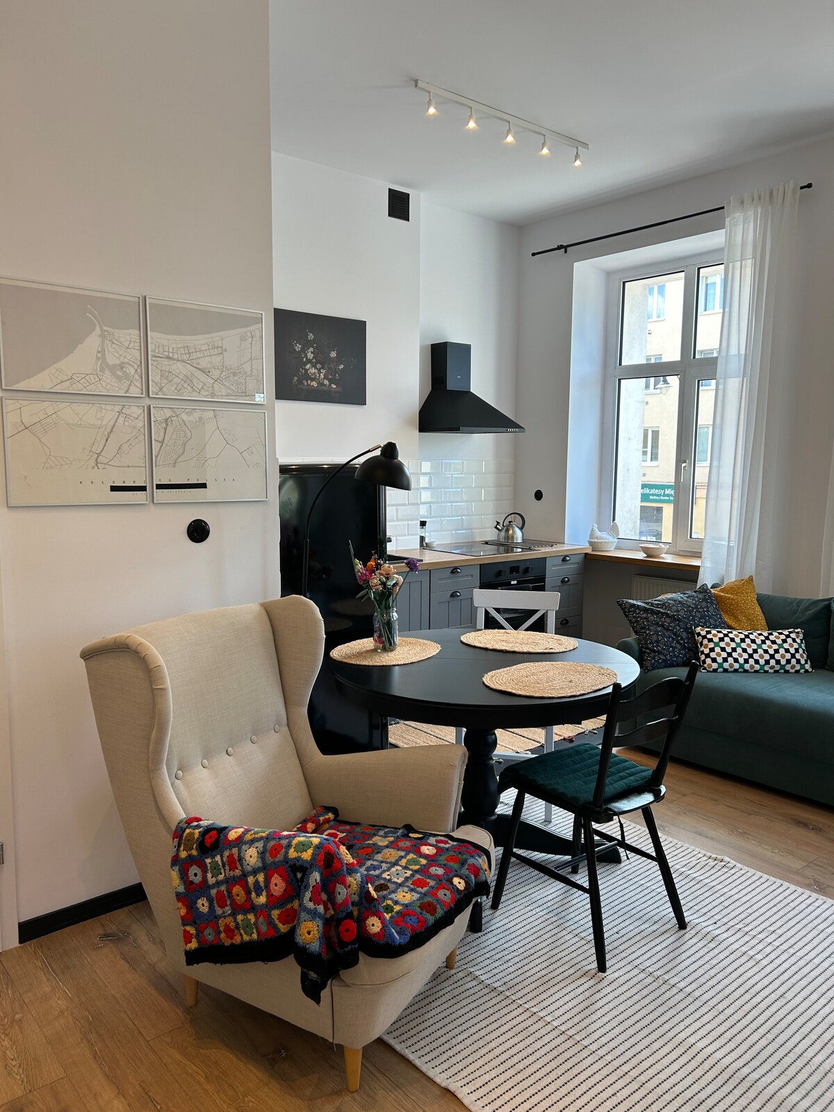 Elegante apartamento en el corazón de Kolobrzeg con vistas a la histórica estación de tren. A 500 metros del mar y de la amplia playa de arena, 700 muelle, brevemente un faro y un puerto marítimo. A pocos pasos del parque de la ciudad, fuente, no muy lejos del casco antiguo. Un apartamento en el 1er piso, en una casa de vecinos, estacionamiento gratuito. Renovado. Acogedor y elegante. Único, decorado con atención al detalle y comodidad de los huéspedes. La unidad combina soluciones modernas con un ambiente acogedor, creando un espacio perfecto:)