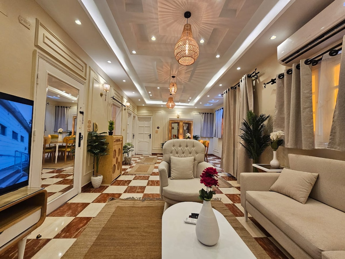 Este espacio único tiene su propio estilo. Main University District Extension of Jehan Street Frente a la Villa Olímpica Un apartamento moderno totalmente climatizado, caliente, cepillos modernos disponibles Internet Las pantallas inteligentes están muy cerca de todos los restaurantes y servicios tienen todo y la cocina está equipada al más alto nivel y el apartamento no está herido es muy especial con todos los lujos Tranquilo y cómodo. Sin inconvenientes. Servicio de limpieza gratuito Disponibilidad de agua mineral durante toda la estancia Hay sesiones de fisioterapia, masajes y servicio de automóvil