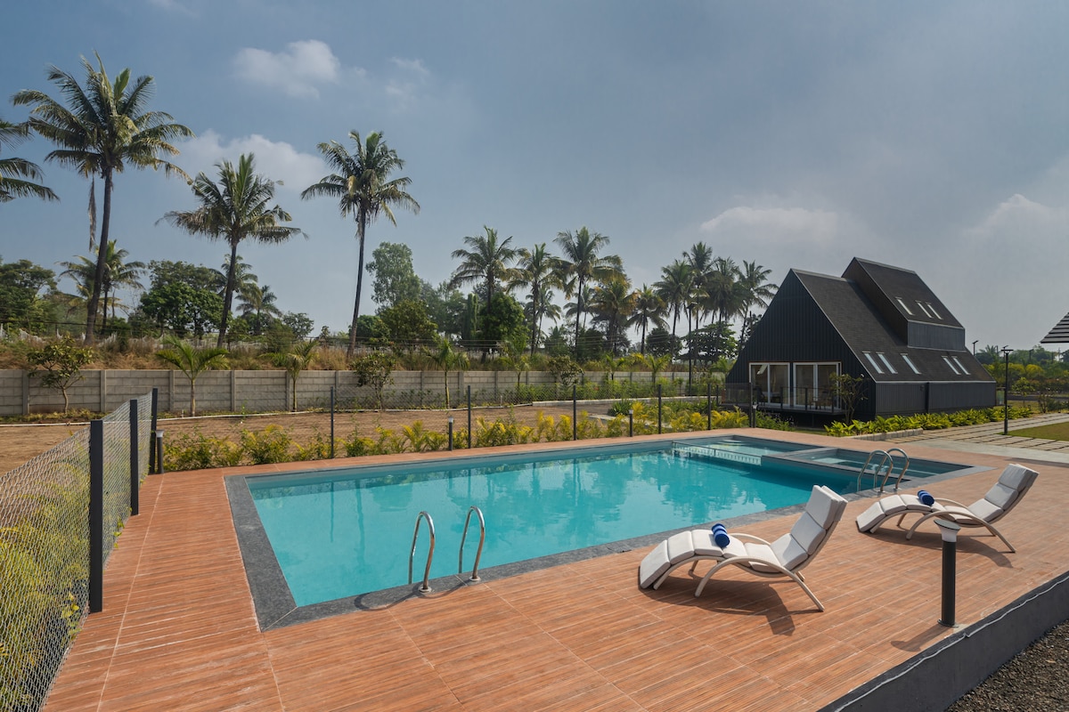 Rustic Chic Farmhouse and a large Pool in Alibaug