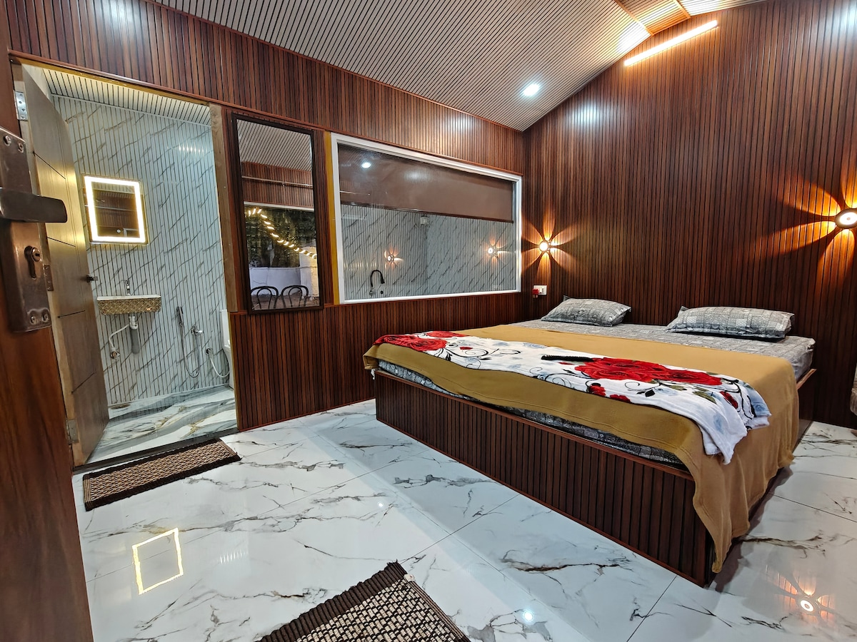 46 Elite Enclave offers deluxe rooms, super-deluxe rooms, studio apartments, a 2BHK and a lavish 3BHK penthouse. Enjoy modern interiors, spacious balconies, smart TVs, fully equipped kitchens, high-speed WiFi and premium amenities. Ideal for solo travellers, couples, families and corporate guests seeking comfort, style and a luxurious stay in Nashik. Our deluxe rooms offer the perfect balance of comfort & elegance. These rooms provide an cozy space for relaxation after a day of exploring Nashik.