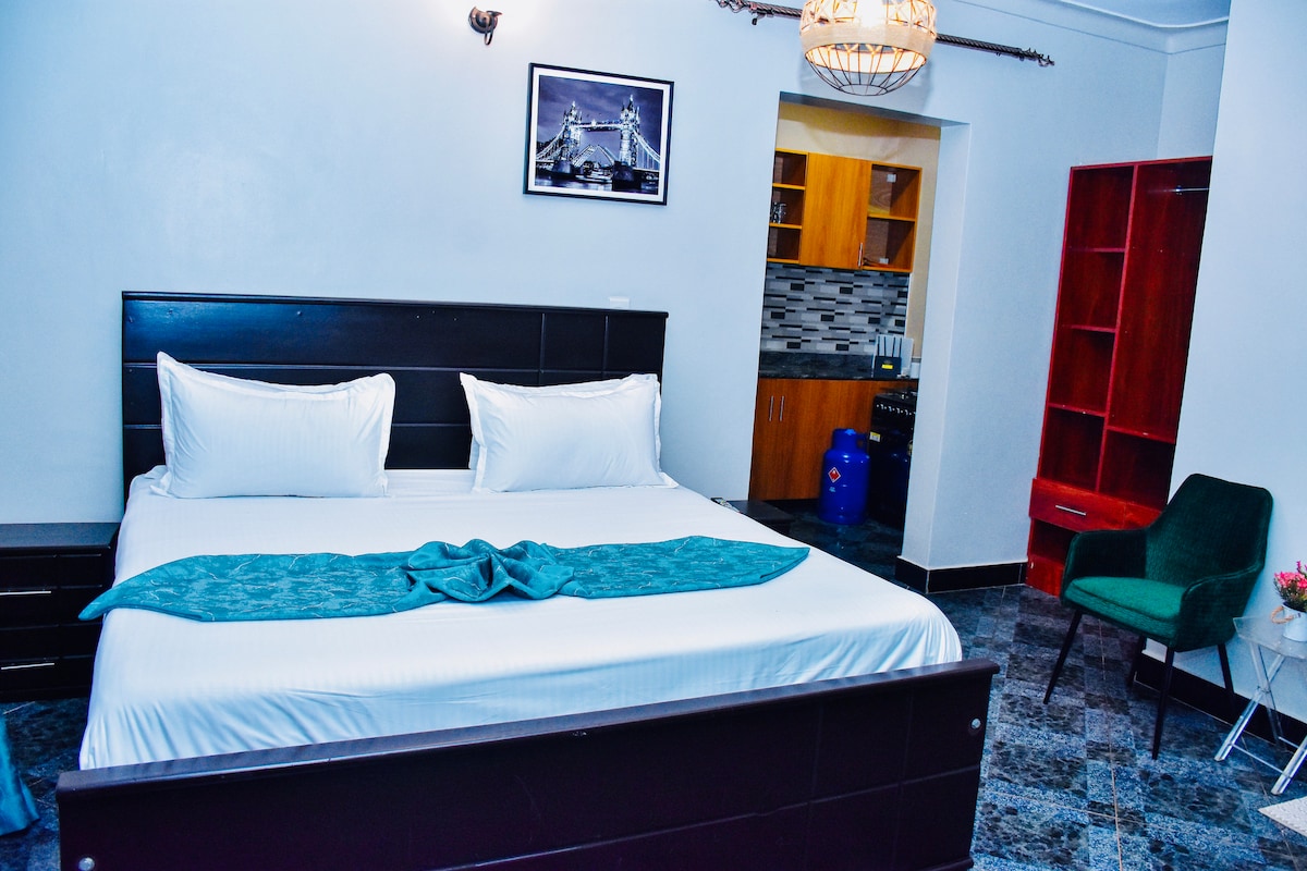 This stylish place is perfect for group trips or if you are an executive not willing to compromise on quality. It's a luxury apartment 10 mins away from the airport, a leisurely walk to Entebbe city and a 5 minute drive to Victoria Mall. Directly opposite Airport View hotel so security is tight, with access to lake views as it's on the top floor!