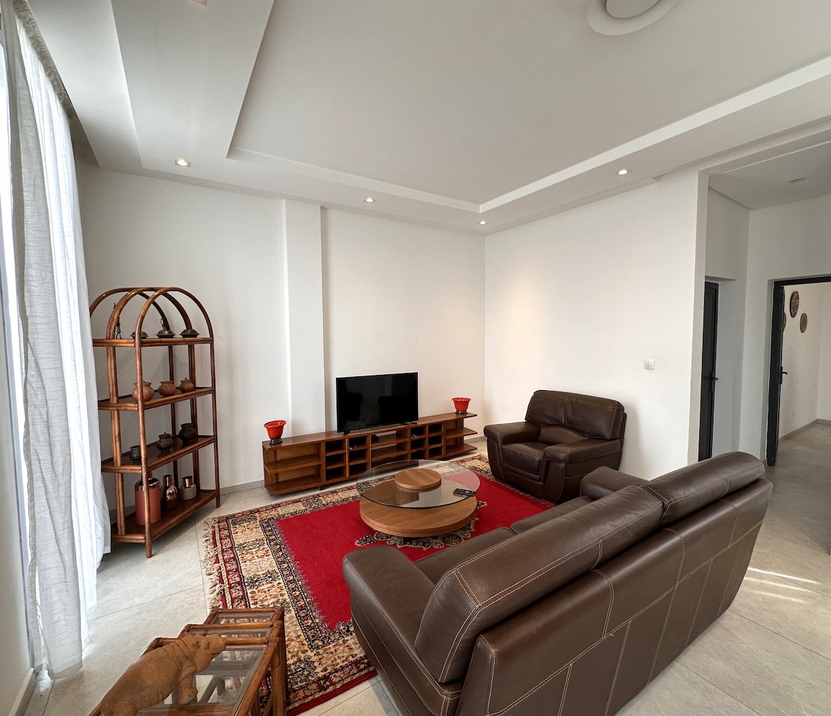 Este apartamento es perfecto para parejas o familias de vacaciones en Bamako, con su proximidad al aeropuerto (10 minutos) y las zonas clave de la ciudad (Aci 2000, centro de la ciudad). Las comodidades como el aire acondicionado, el grupo electrógeno y la cocina equipada lo hacen muy práctico. Además, existe la posibilidad de comer en el lugar. El servicio de transporte desde el aeropuerto también es posible. La electricidad corre a cargo del cliente con un contador de prepago.