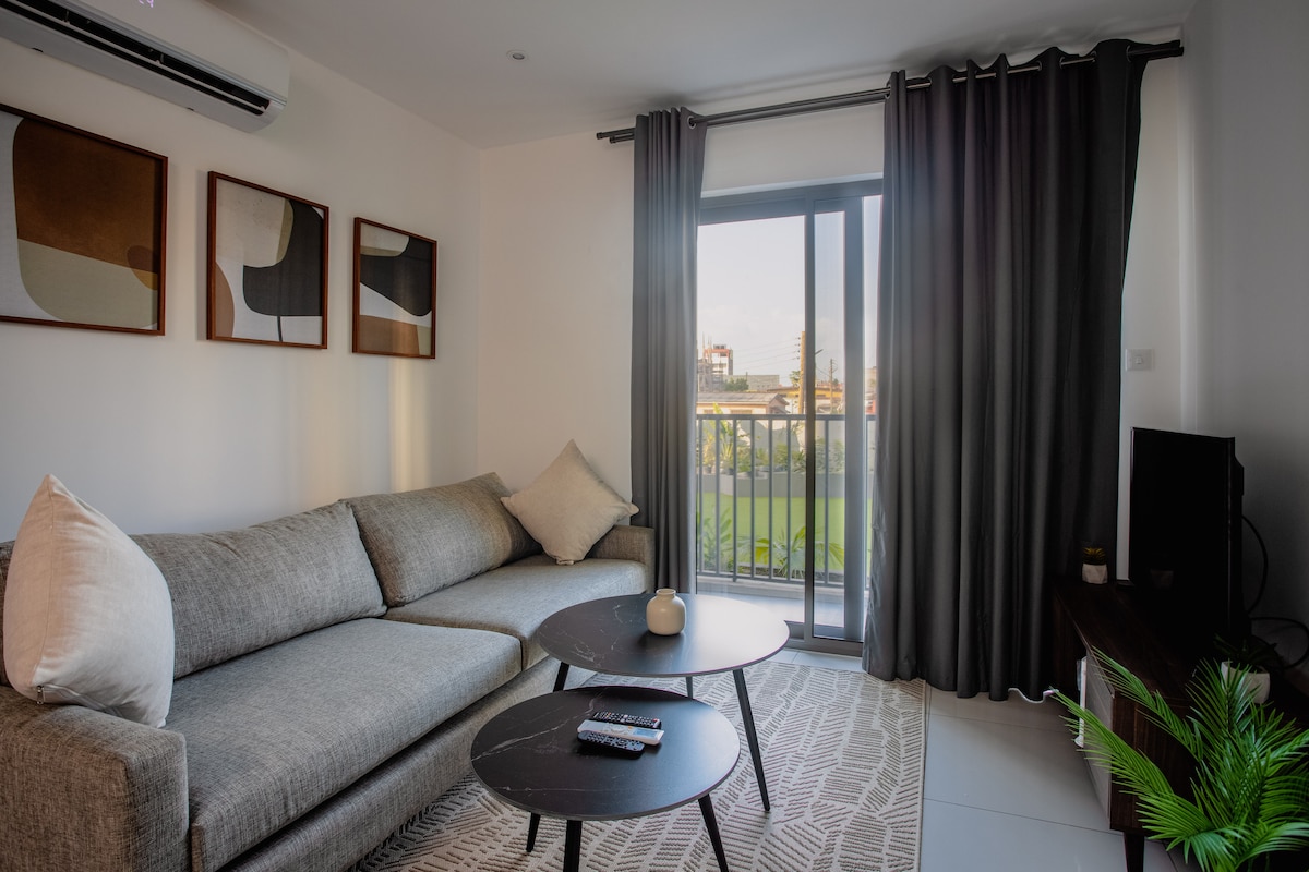 The Serene Haven: su refugio de tranquilidad en Accra Apenas cinco minutos después de aterrizar en el aeropuerto de Kotoka, entra en un espacio donde la ciudad se ralentiza y la comodidad se apodera. Nuestro espacioso refugio de 2 dormitorios en Airport Residential combina un diseño moderno con un ambiente tranquilo y reparador. Despiértate con luz suave, relájate en espacios amplios y disfruta de los barrios más prestigiosos de Accra justo en tu puerta. Para negocios, romance o una estadía larga, Serene Haven se convierte en el capítulo pacífico de tu historia en Accra