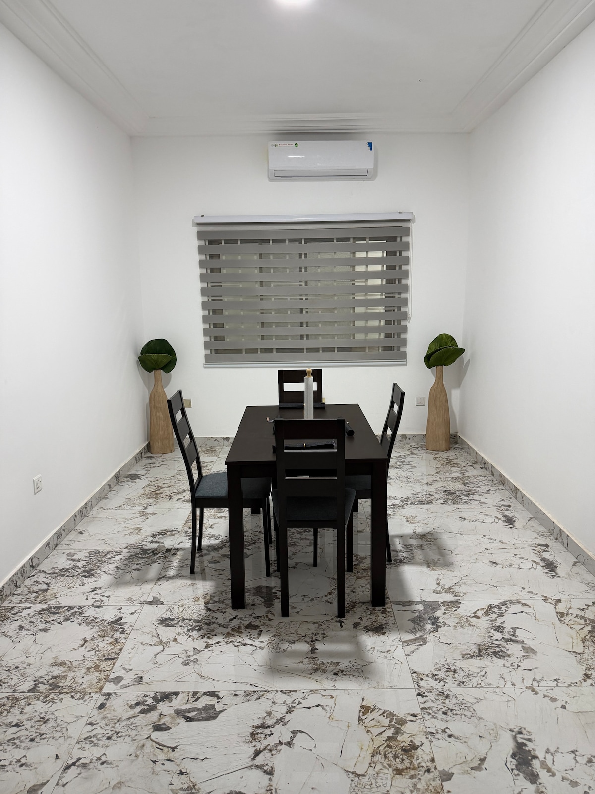 Disfruta del lujo moderno y la comodidad tranquila en Borteyman Luxe Escape. Ubicado en los tranquilos y seguros apartamentos Borteyman SSNIT, este elegante apartamento de 1 dormitorio ofrece 1,5 baños, una cocina totalmente equipada, lavadora, dos aires acondicionados, un armario personalizado y un escritorio de trabajo dedicado. A solo 20 minutos en coche del Aeropuerto Internacional de Kotoka, es perfecto para viajeros de negocios, trabajadores remotos o una escapada relajante. Disfruta de un registro de entrada autónomo sin complicaciones, wifi rápido y fácil acceso a los mejores lugares de Accra.