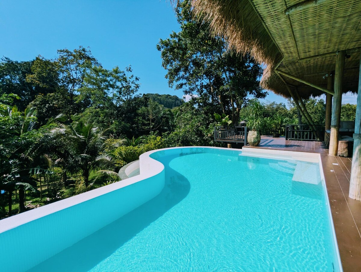 Retiro 🌴 paradisíaco con piscina privada Escápate a nuestra lujosa villa de 2 dormitorios y 2 baños ubicada en el corazón de la serenidad, a solo 10 minutos de la playa de Klongmoung y del impresionante parque nacional Khao Ngorn Nark (montaña de la cresta del dragón). Exuberante jardín y comedor al aire libre. Aparcamiento privado. Tienda práctica y varios restaurantes. Disfruta de la tranquilidad con tu propio oasis privado, date un chapuzón en la piscina mientras disfrutas del jacuzzi. Adopta la cultura local.