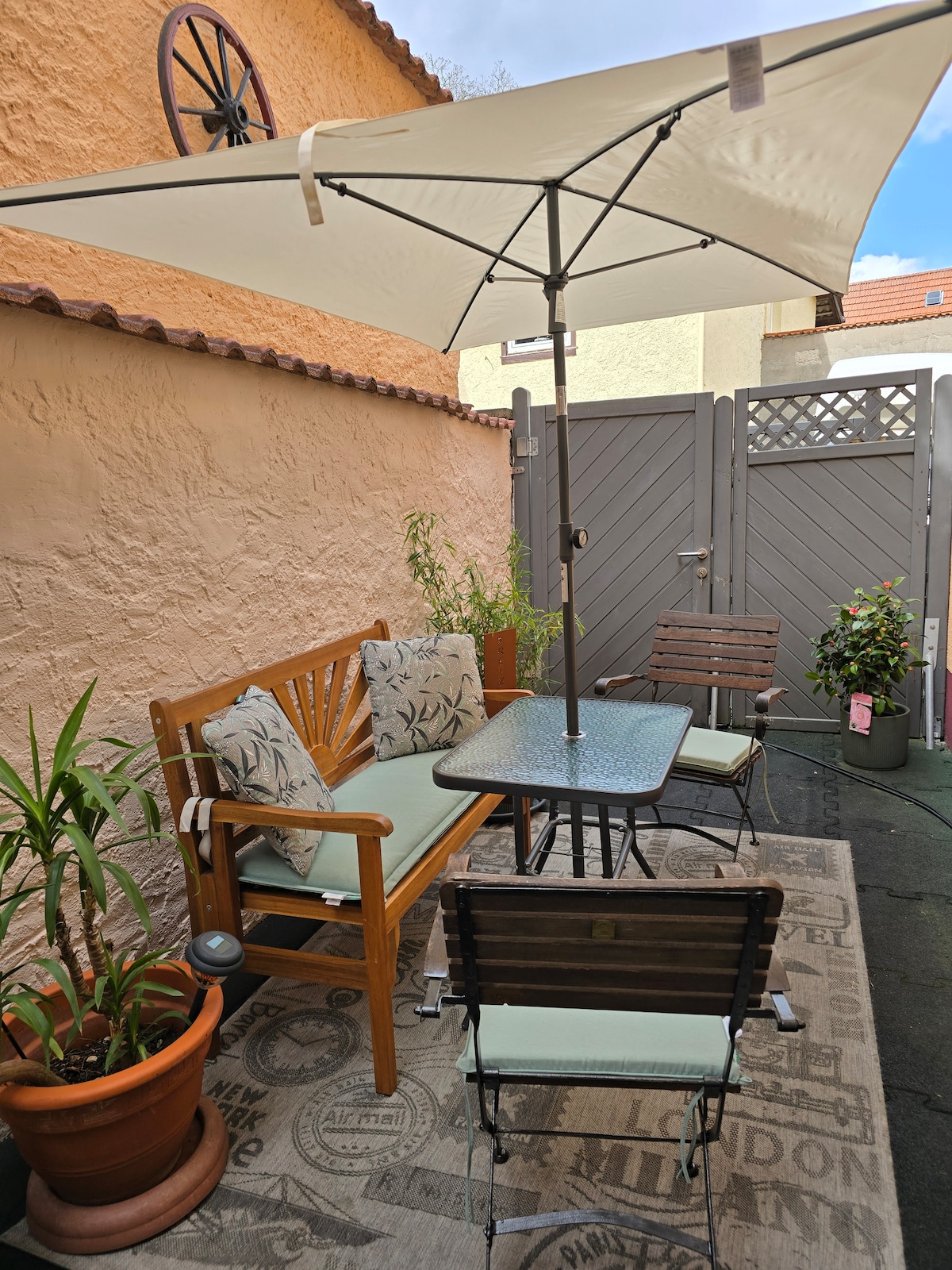Le damos una cálida bienvenida a nuestra casa y esperamos que tenga una estancia agradable. Dado que este también debería ser el caso de los siguientes huéspedes, le pedimos que trate el apartamento con cuidado y que lo deje como lo encontró. Lamentablemente, no puede traer a su mascota, por consideración a futuros huéspedes que sean alérgicos. Muchas gracias. El apartamento mide unos 60 metros cuadrados y tiene una zona de estar en el patio sombreado en verano.