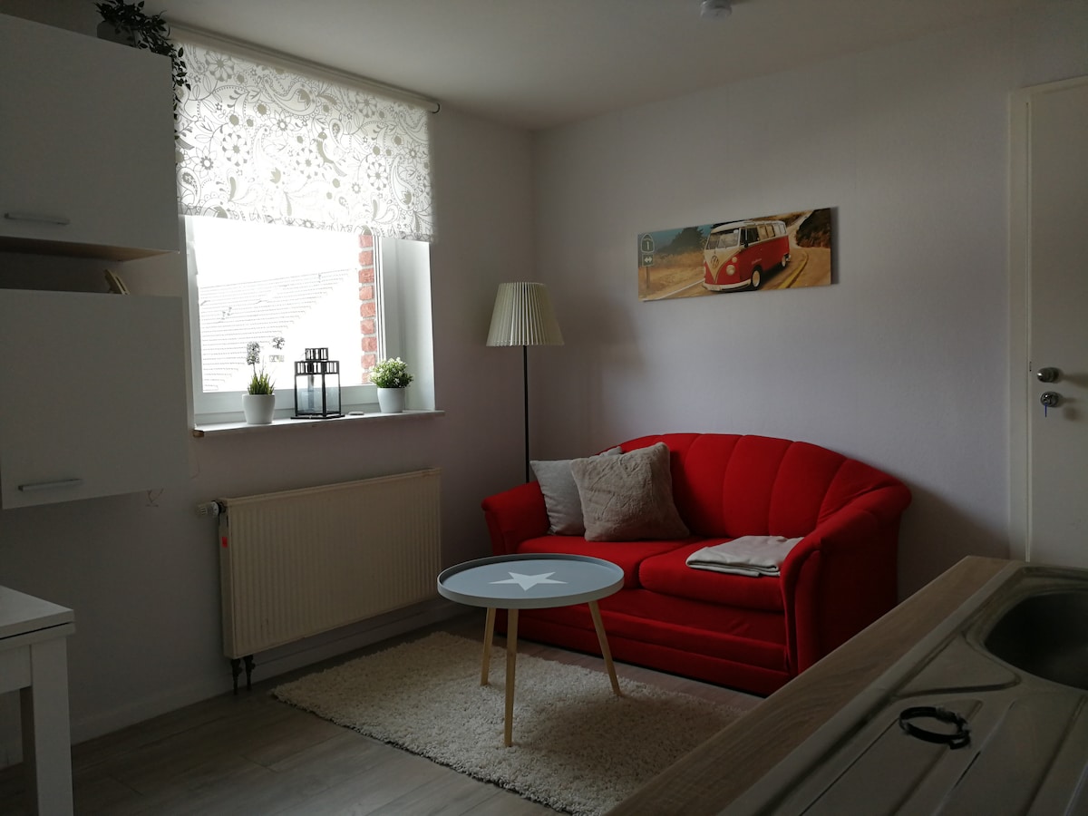 Estudio elegante y bien amueblado con terraza y jardín para 2 personas 35 metros cuadrados con terraza y acceso directo al jardín Cama matrimonial grande 1,80 x 2,00 m Tranquilamente ubicado en una casa privada de 2 familias Estacionamiento directamente en la casa Refrigerador, cafetera, hervidor, vajilla, rollo de cocina (no hay utensilios de cocina) Toallas y camas incluidas. Perros de una tarifa plana de 40 cm-5 € Calle tranquila, vistas al verde, oportunidades de senderismo desde la puerta principal, panadería a 5 minutos Actividades: Elspe Festival, Bigge