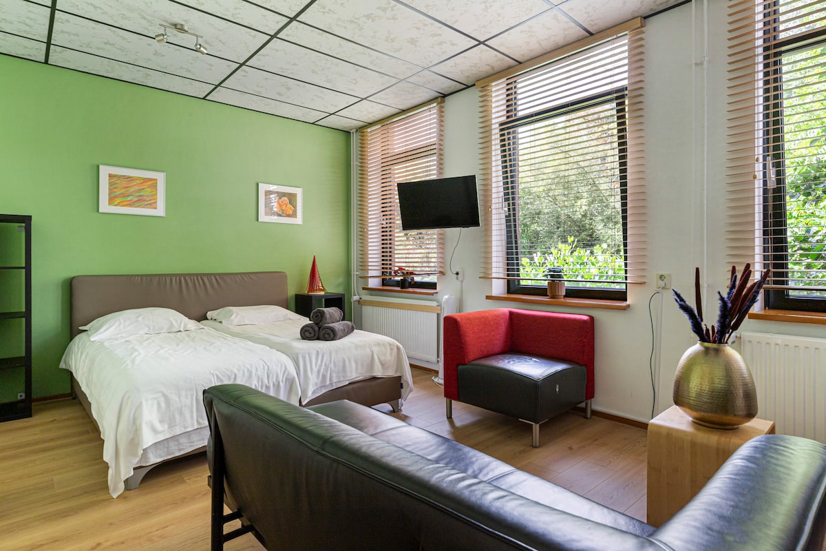 ¡Bienvenido! ¡Te ofrecemos tu propia entrada, baño y cocina! ¿Te gusta el campo? Disfrute de la tranquilidad de nuestros amplios jardines, de la encantadora chimenea y de nuestro desayuno «real» (17,50 €/persona). La entrada de nuestra propiedad está protegida con una cámara exterior visible. Lekkerkerk se encuentra en el corazón verde de Holanda Meridional. Visita los molinos de viento de Kinderdijk, patrimonio de la humanidad, o nuestra granja de quesos local con nuestras bicicletas de alquiler (10 €/día) para disfrutar de la mejor experiencia holandesa. WIFI 58,5/23,7 Mbps .