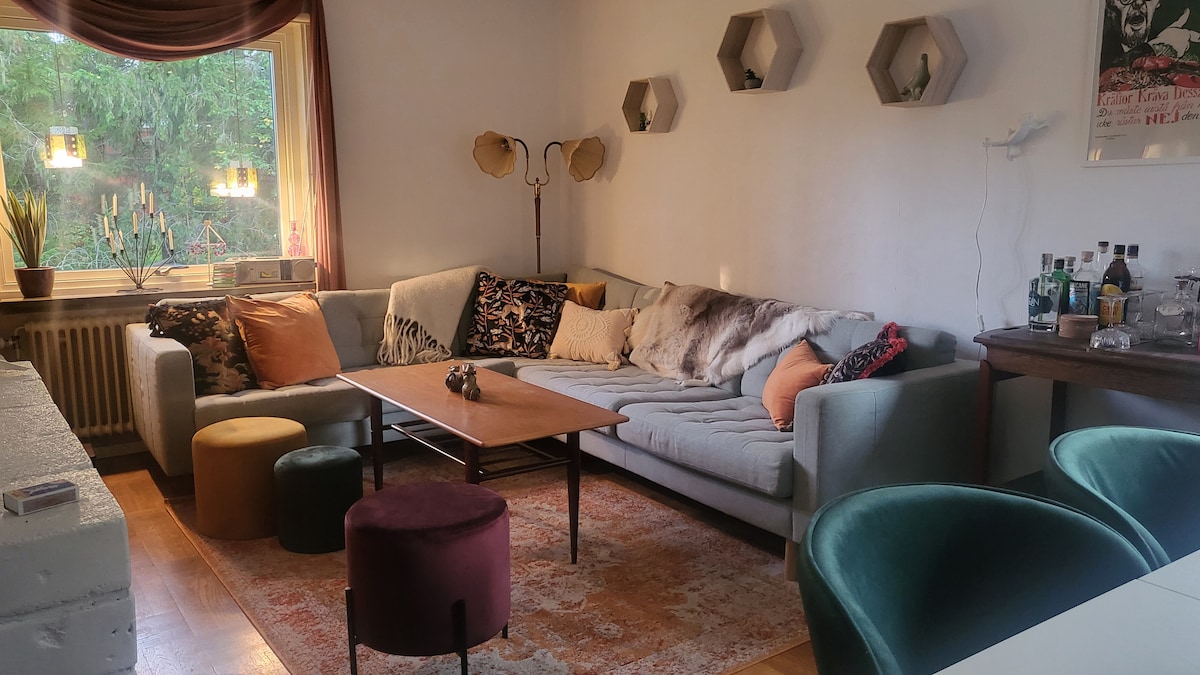 El anexo está a solo 7 km de Ostersund en nuestra maravillosa granja de caballos. La vista está abierta donde pastan los caballos a la luz de Östersund y Frösön. El alojamiento se adapta a todos, desde parejas, viajeros de negocios hasta familias con niños. A 450 metros del autobús y un bonito carril bici hacia la ciudad. El anexo se construyó en 2014, tiene una cocina totalmente equipada, wifi inalámbrico y sistema de audio Sonos. La sala de estar con más de 5 metros hasta el techo tiene un gran candelabro de cristal, chimenea, mesa de comedor, puertas dobles a la gran cala.