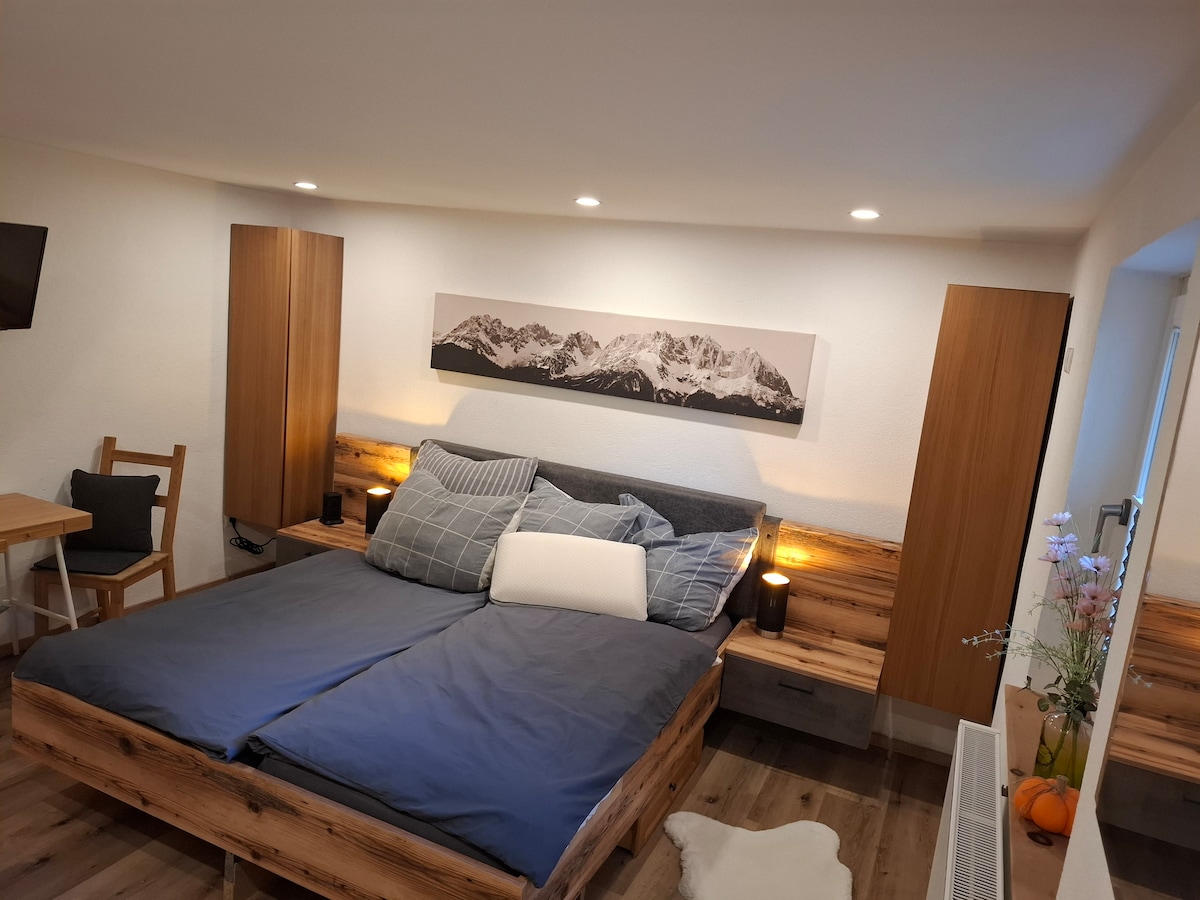 Luminoso y elegante, el estudio de 43 m2, decorado con mucho cariño (2ª piso) para sentirse bien. Es tranquilo pero céntrico, ofrece una hermosa vista y es el punto de partida ideal para excursionistas y entusiastas de los deportes de nieve. Equipamiento: - Cuarto de baño con ducha y WC - Sala de estar con sofá y comedor - Dormitorio con cama doble (1,6 x 2 m) y cama adicional - Amplia terraza - Pequeña cocina - Wifi y TV vía satélite - Plaza de aparcamiento