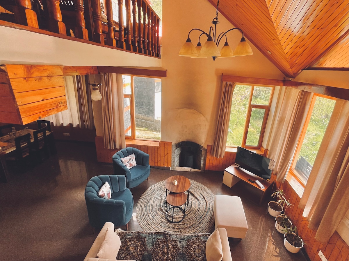 Some places make you pause at the door. The Wooden Chalet,Manali is one of them — a private 4 bedroom chalet in Prini, where the living room rises 25 feet to meet a wall of glass, & beyond it, the Rohtang's snow peaks fill every window like a painting that changes hour by hour. This is not a hotel with a view. It is your own private Himalayan home — with a chef who cooks fresh from an in-house menu, a caretaker who anticipates & the kind of stillness that most people travel a long way to find.