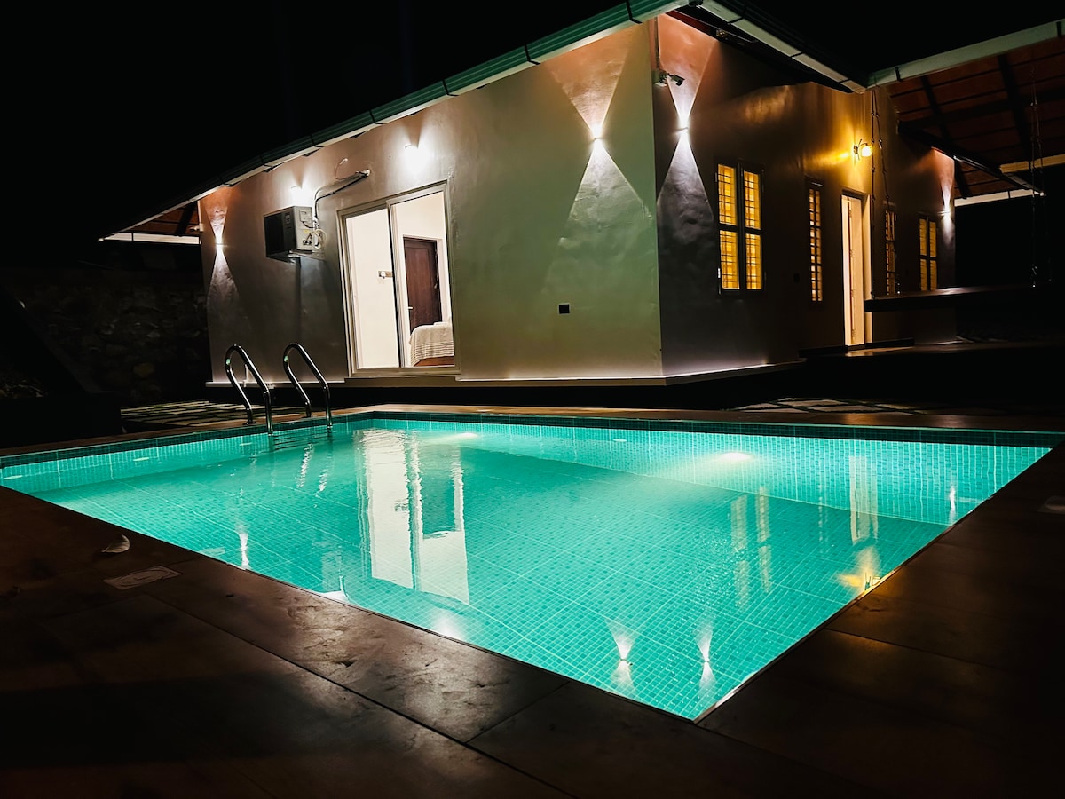 Escápate a un refugio sereno en el corazón de Vythiri, donde el lujo y la naturaleza se unen para crear recuerdos inolvidables. Ubicada en medio de exuberantes jardines de té, esta exclusiva propiedad de 1 acre cuenta con una gran piscina privada y un arroyo prístino accesible solo para nuestros huéspedes. Ya sea que estés buscando una escapada romántica, unas vacaciones familiares, una reunión de amigos o un retiro tranquilo, este alojamiento ofrece la combinación perfecta de comodidad, privacidad y belleza natural.