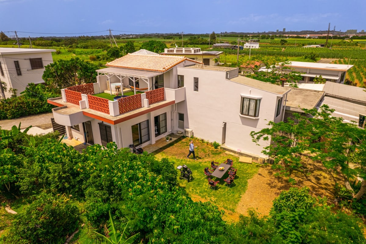 A cozy garden house renovated from a traditional Okinawan folk home in Miyakojima. A one-group-per-day private stay, ideal for travelers who want to live like a local. Just 10 minutes from Miyako Airport and 30 minutes from Shimojishima Airport by car. Shops, supermarkets, Don Quijote, and a rental car shop (3-min walk) are nearby. No ocean view, but enjoy BBQ, hand-held fireworks, and movies on a large projector. Perfect for families, couples, friends, solo travelers, and retreat stays.
