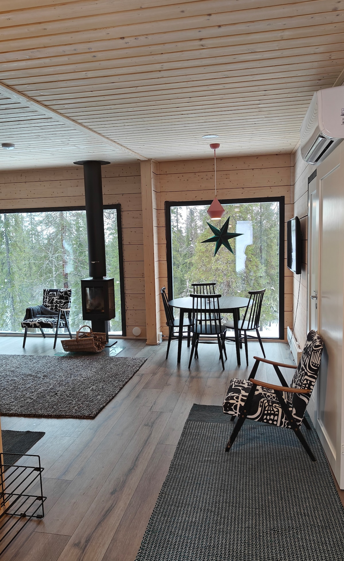 Preciosa y espaciosa casa de vacaciones en la tranquila zona de Salmilampi, a solo 4 km de la estación de esquí de Ruka. Este es el lugar donde puedes relajarte y disfrutar de una sauna de leña, un jacuzzi familiar de leña al aire libre y agradables veladas en una espaciosa terraza o acogedora cabaña para barbacoa. Sala de estar y cocina de planta abierta con grandes ventanales hacia la naturaleza. ¡Lugar perfecto para parejas, familias y grupos pequeños para pasar unas vacaciones en el norte de Finlandia!