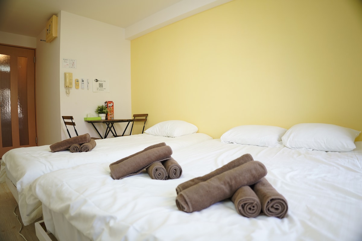 ¡Edificio nuevo! ¡Zona de Namba, el centro de Osaka! ¡Namba, Nihonbashi, Dotonbori, Denden Town, Kuromon Market, Shinsaibashi! ¡Acceso fácil a Kioto, Kobe y Nara! ¡Dos camas individuales! Wifi de bolsillo, cepillo de dientes, pasta de dientes, champú, acondicionador, gel de ducha, lavado facial, etc. ¡Todo gratis! ★Si no hay espacio para la fecha que deseas, ponte en contacto con nosotros y te recomendaremos otros alojamientos que administremos. ★ [Recogida y lijado en el aeropuerto/USJ] [Excursión de 1 día a Osaka, Kioto, Wakayama] ★El alquiler de bicicletas ya está disponible★