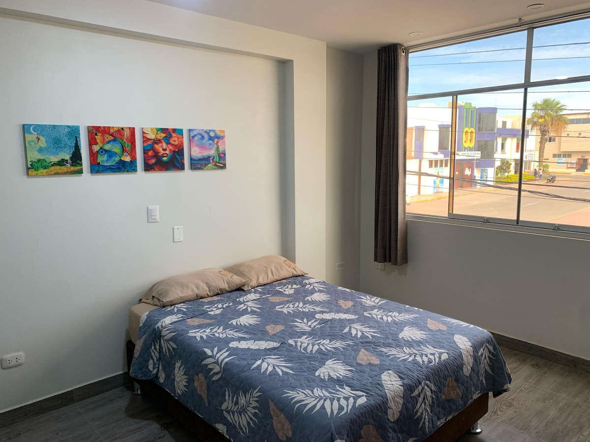 Relájate en una cómoda suite privada dentro de un moderno departamento, a solo 3 cuadras del muelle de Huanchaco. Disfruta de tu propia habitación con baño privado y acceso a la sala, comedor, cocina equipada y lavandería. Perfecta para parejas, viajeros solos o quienes buscan tranquilidad sin renunciar a la comodidad del hogar.