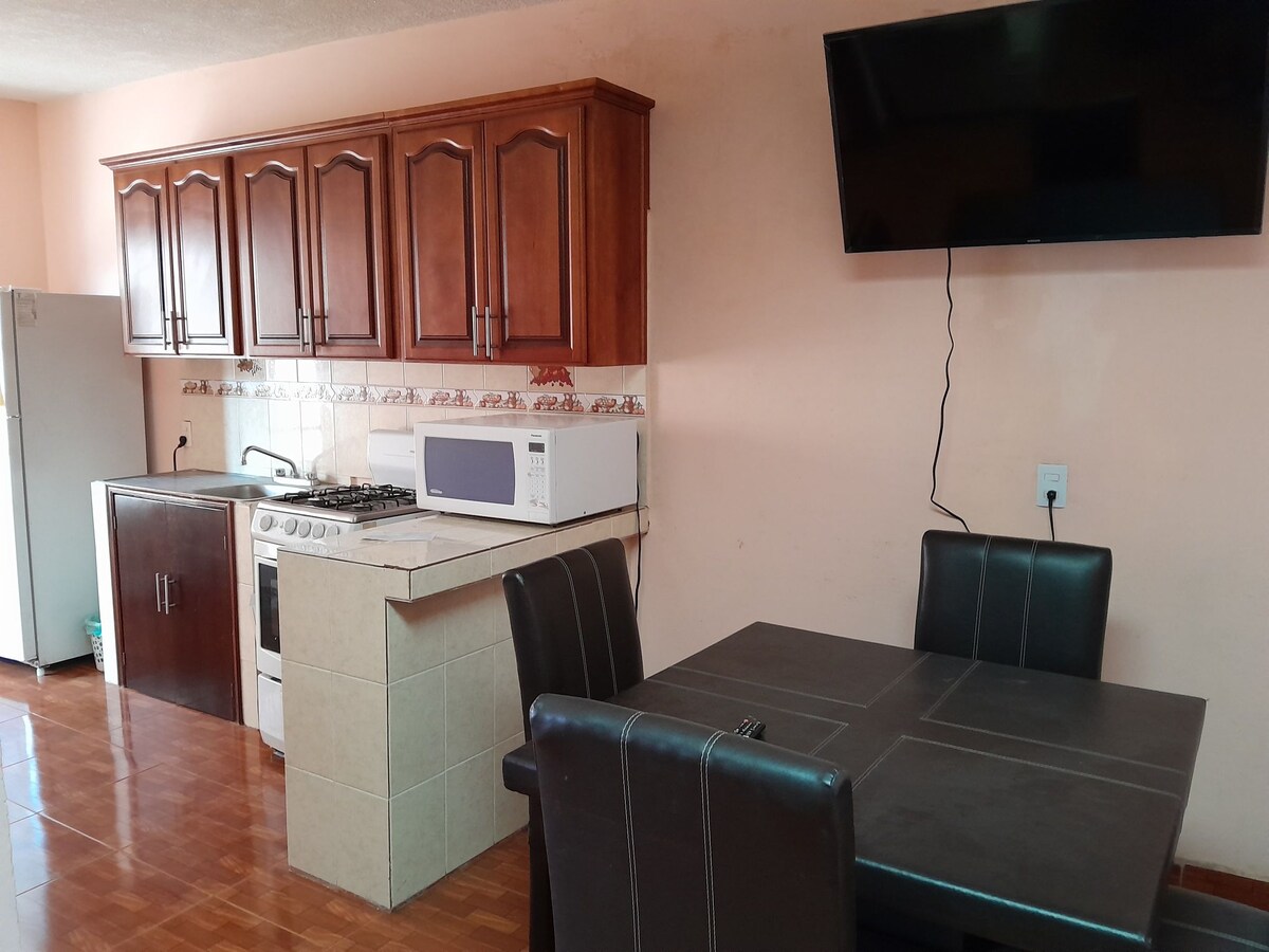 Es un departamento fresco, sencillo, decorado cuidadosamente, luminoso y amplio. Cuenta con todas las comodidades necesarias para descansar y relajarte en el pueblo mágico de Salvatierra Gto.