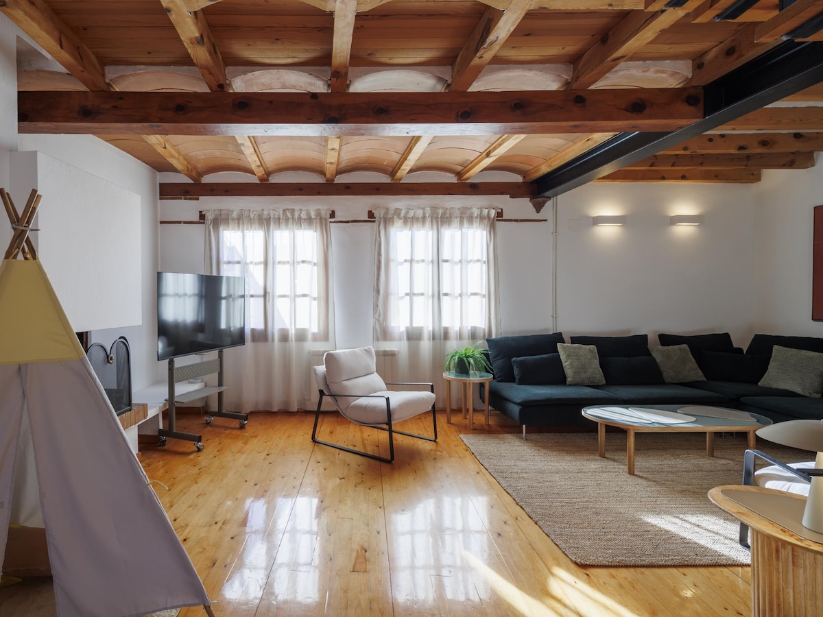 Este alojamiento con estilo es perfecto para viajes en grupo y en familia. Espacioso, cómodo y cuidadosamente decorado, cada estancia ha sido diseñada para ofrecer una atmósfera acogedora. El apartamento destaca por su amplitud y luminosidad. El salón invita a tomar un café, tener una charla tranquila o cena relajada. La ubicación es céntrica: todos los servicios se encuentran a menos de 3 minutos a pie, y la estación de tren y autobuses está enfrente. El barrio tranquilo para poder descansar.