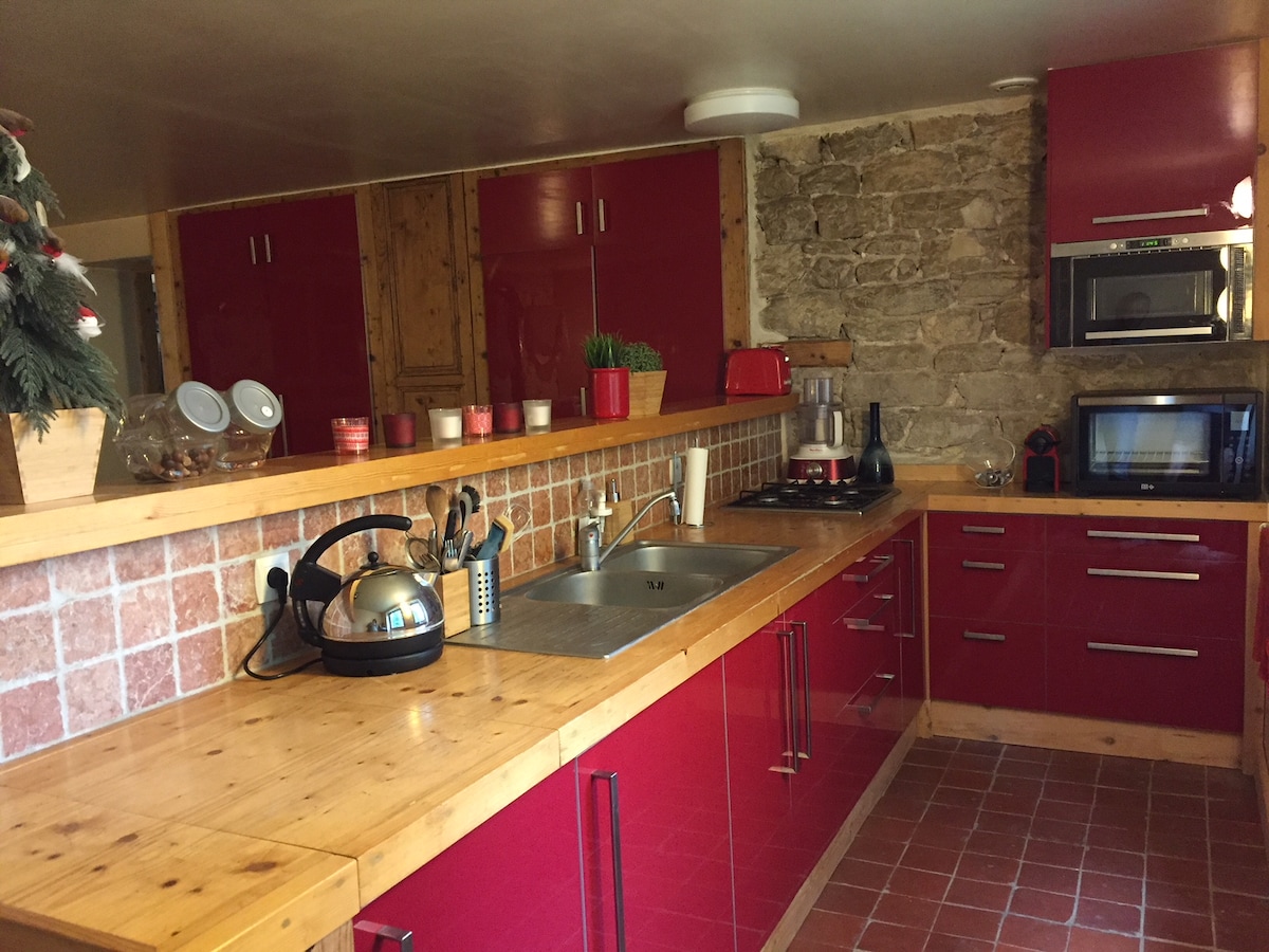 Baptisé "Un Autre Monde" ce lieu atypique est installé dans une ancienne imprimerie, proche du centre ville. Vous disposez de plus de 250 m2 d'espaces entièrement équipés et personnalisés avec les meubles uniques que je crée. Vous disposez également d'une salle de jeu et d'un espace détente (sur réservation et commun aux autres appartements). Un grand garage vous permet de garer au moins 3 voitures et des motos. Vous disposerez d'un jardin au bord de la rivière accessible par quelques marches.