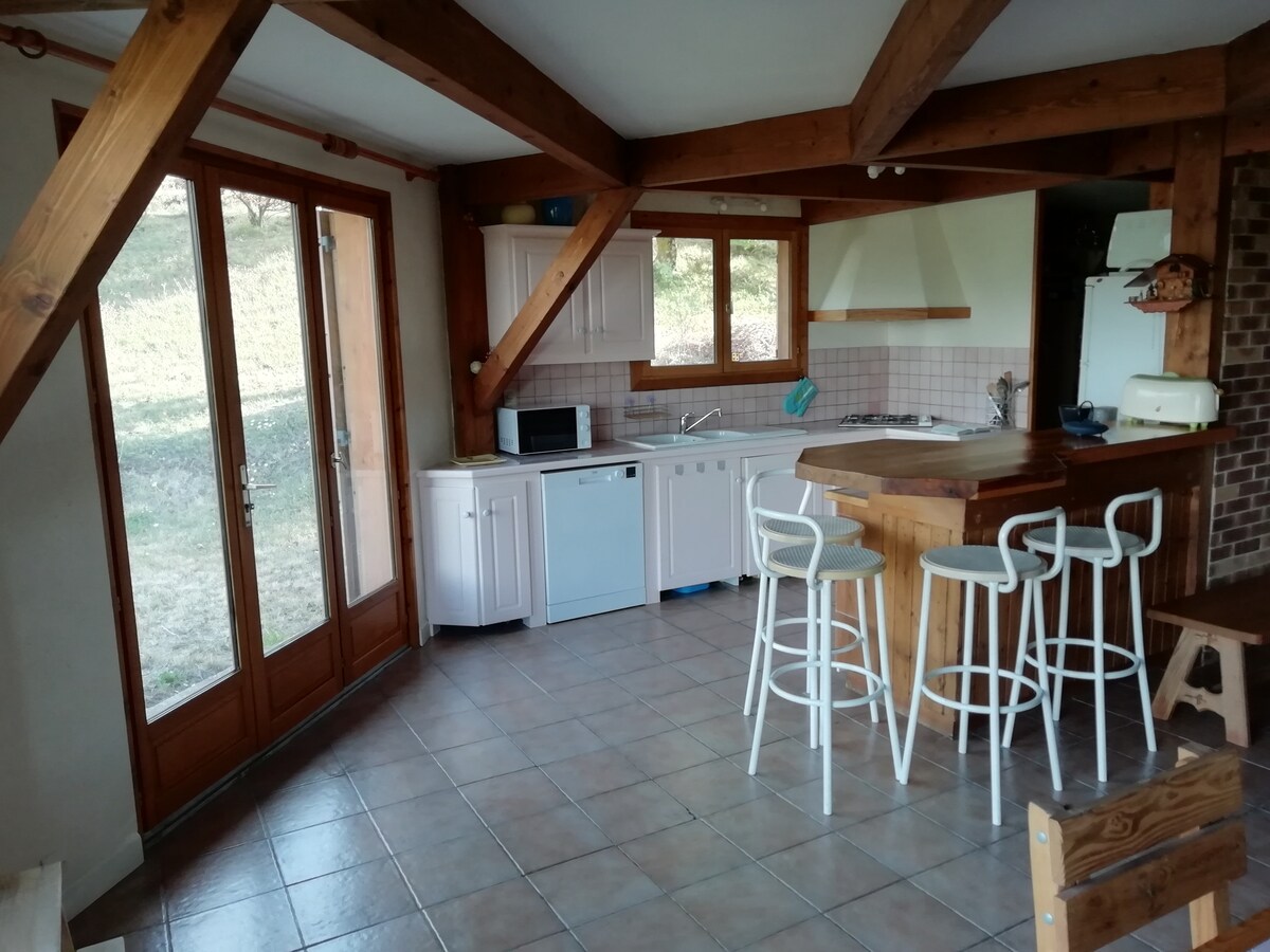 Disfrute de la naturaleza y la tranquilidad cerca de las montañas . Apartamento independiente que se desglosa de la siguiente manera: Una sala de estar con una cocina totalmente equipada ( nevera lavavajillas placa horno vajilla disponible cafetera tostadora ) Una sala de estar con mesa y sofá cama (2 plazas) Televisión Un escritorio Una habitación con una cama de 140 por 190 Un altillo con 2 camas de 80 por 190 Una encantadora terraza privada Un cuarto de baño con lavadora e inodoro