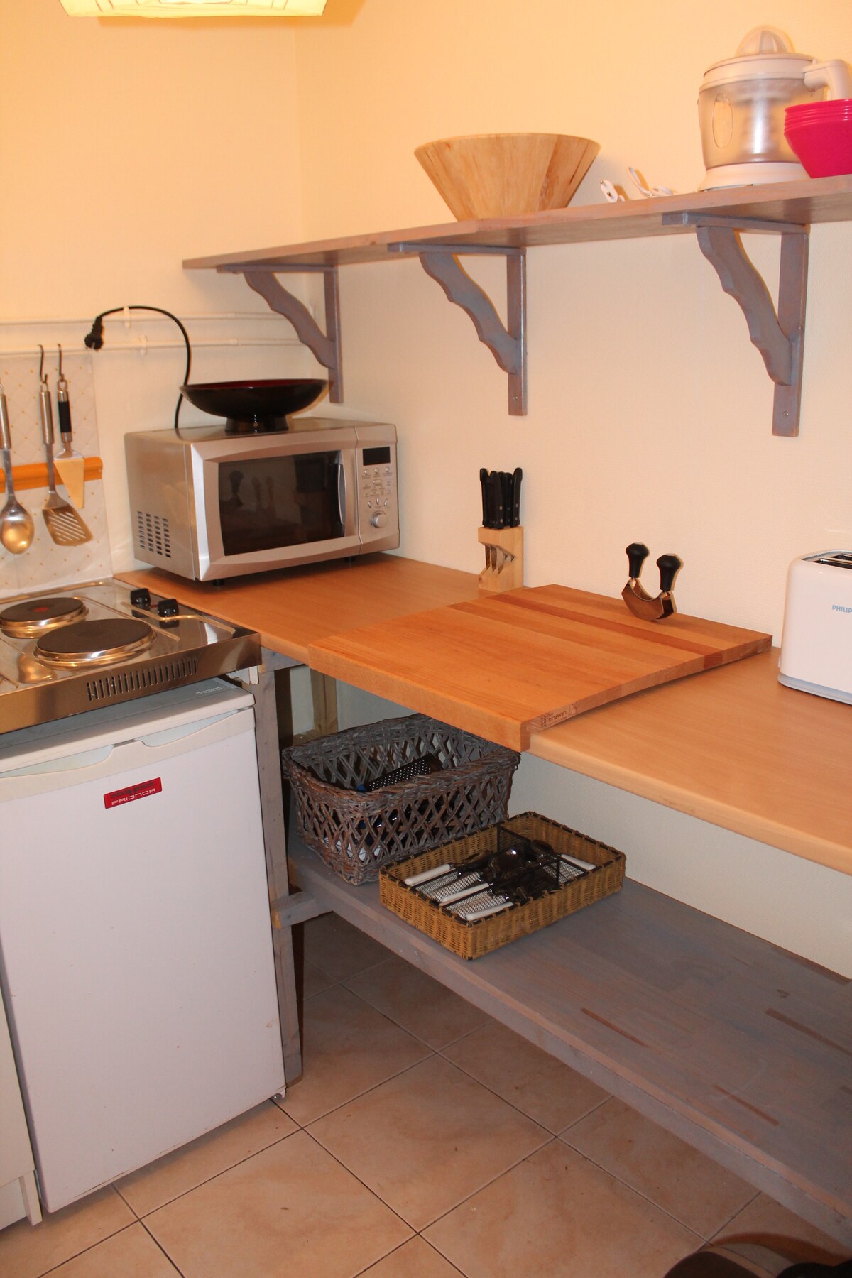 Lejos del bullicio de los campings, luminoso estudio de 18 m² en entresuelo en casa unifamiliar con entrada independiente. Zona residencial tranquila y arbolada, a dos pasos de los carriles bici y del mar (a 3 km en bicicleta). Cerca del centro ecuestre (1 km en bicicleta). Este alojamiento funcional está decorado con un espíritu de vacaciones junto al mar. Habitación principal de 18 m²: 1 cama de matrimonio, 1 cama individual, cocina equipada. Columpio y acceso al jardín con zona de comedor. Se proporciona ropa de cama. Hay un perro.