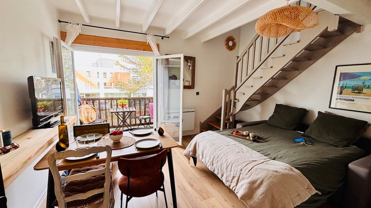 Bienvenido a este encantador estudio con todas las comodidades situado en Aytré, a pocos minutos de La Rochelle, entre el lago y el mar. Disfruta de un espacio moderno y luminoso, ideal para una estancia en solitario o en pareja. Disfrutarás especialmente de su gran terraza privada, perfecta para relajarte al sol, comer al aire libre o desayunar tranquilamente. Regálese un descanso yodado, entre el mar, la naturaleza y la ciudad: estaremos encantados de darle la bienvenida a Aytré
