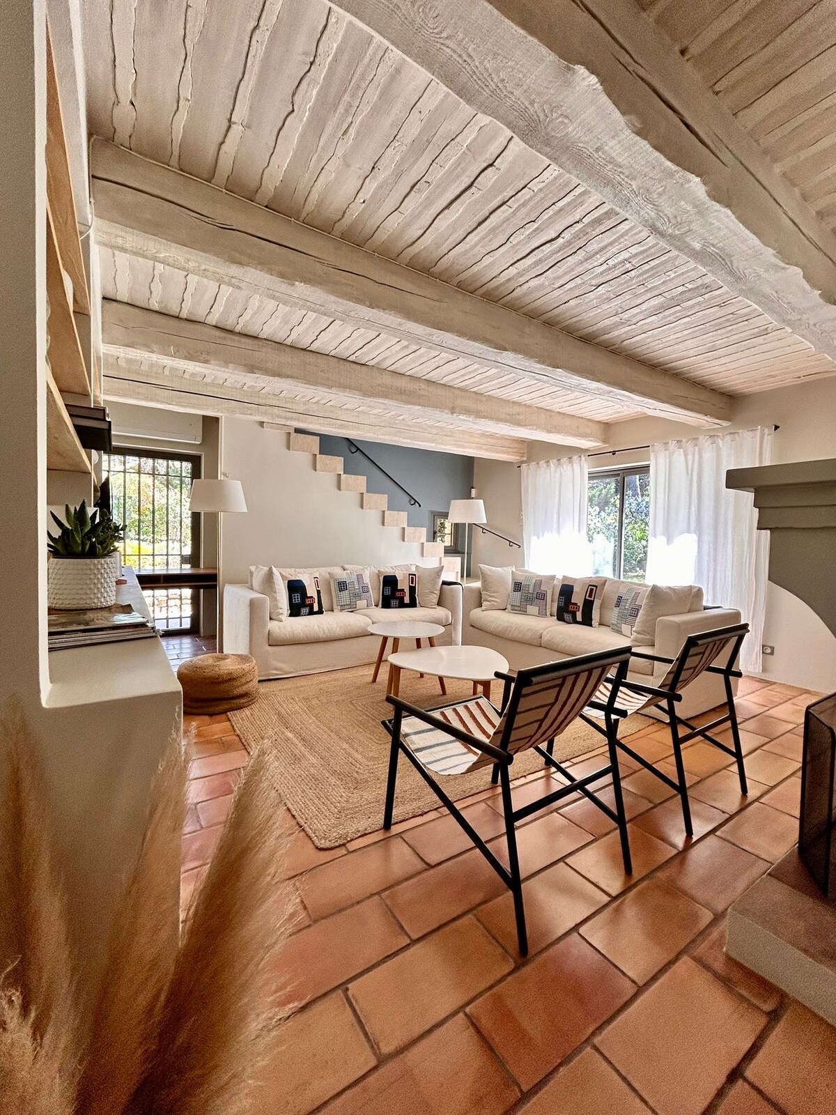 Esta casa de piedra (300m2), construida en forma de U alrededor de la piscina, ofrece numerosas áreas de relajación y tiene un hermoso jardín. El diseño de interiores es contemporáneo y luminoso. Hay 3 dormitorios y 2 baños para tu comodidad. Hay comedor y zona de estar al aire libre en la terraza cubierta junto a la piscina. El servicio incluye mantenimiento de piscinas y jardines, limpieza semanal y cambio de sábanas y toallas.