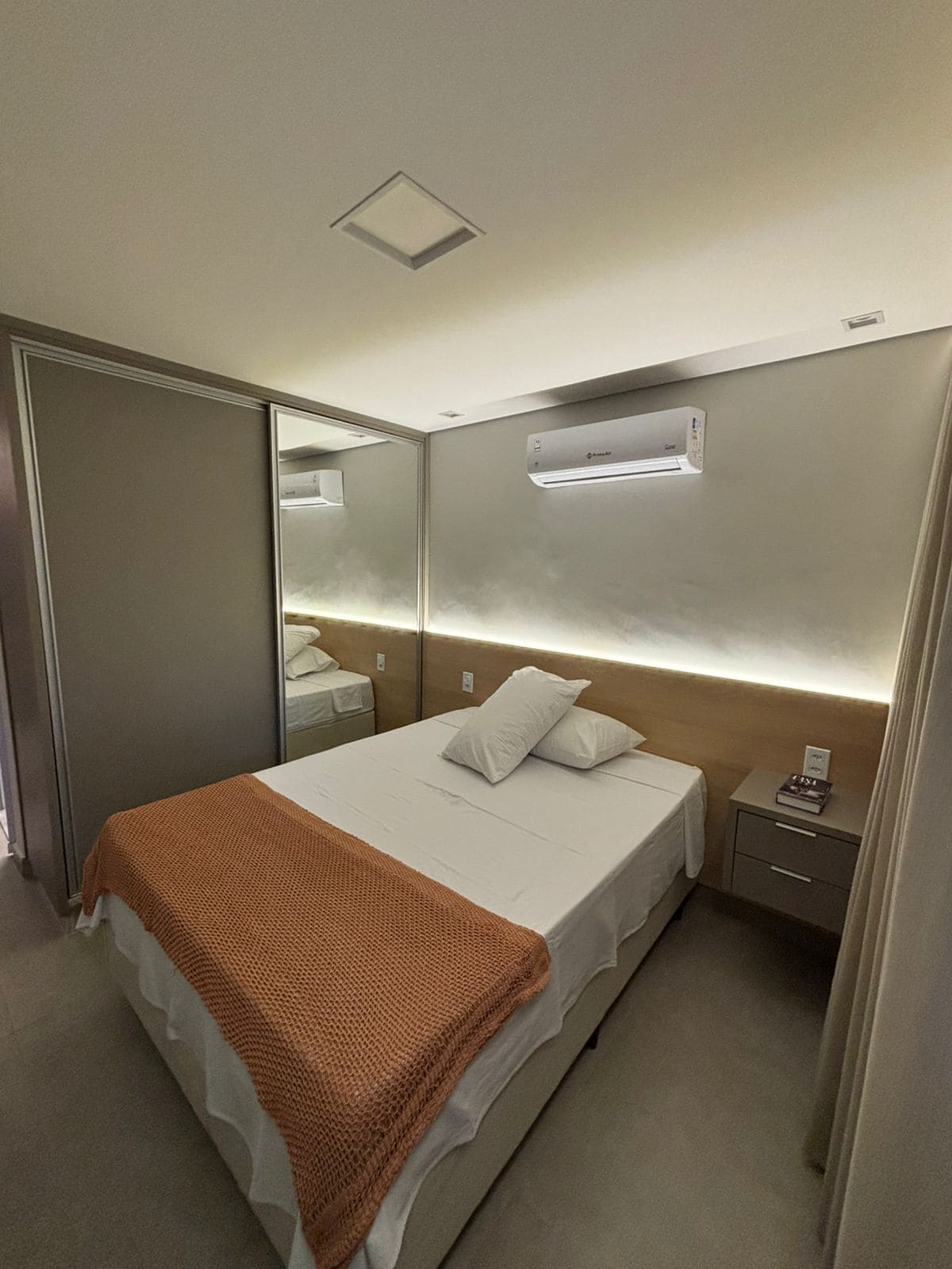 Apartamento en Life Resort, frente al Lago Paranoá, jardín y piscinas, decorado para el bienestar de los huéspedes, con muebles nuevos, cama queen, minibar, TV de 50", cafetera Nespresso, filtro de agua fría, armarios y portaequipajes, plancha, secador de pelo, cuna desmontable (bajo petición), coktop, microondas, platos, vasos, cubiertos, ollas y utensilios. Como cortesía: mini jabón, champú y acondicionador, ropa de cama y toallas, productos de limpieza y WiFi.