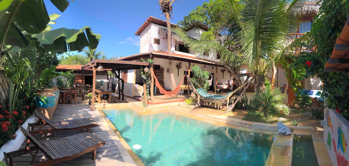 Villa Sabiá Eco Bungalows is an enchanting hideaway located on Preá Beach in Jericoacoara National Park, Ceará. Inspired by Balinese architecture, the hotel combines comfort and sustainability amidst an exuberant landscape.  🌿 Structure and accommodation With an area of 5,000 m² full of coconut and cashew trees, Villa Sabiá offers ecological bungalows built with reforested wood and decorated with elements from Bali, providing a zen and welcoming atmosphere.
