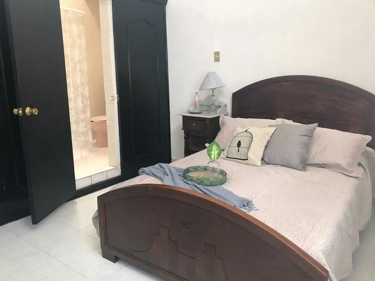 Excelente opción para hospedarse, sintiéndote como en casa, en un departamento completamente remodelado en el centro de la ciudad, a solo 5 min caminando del jardín principal. Todo lo encontraras sin usar un vehículo, restaurantes, museos, iglesias, bares, etc. Contamos con wifi, calentador solar, toallas, TV, cocina equipada, closets, jabones, cuarto con baño completo, sala con sofacama y cochera para un carro.