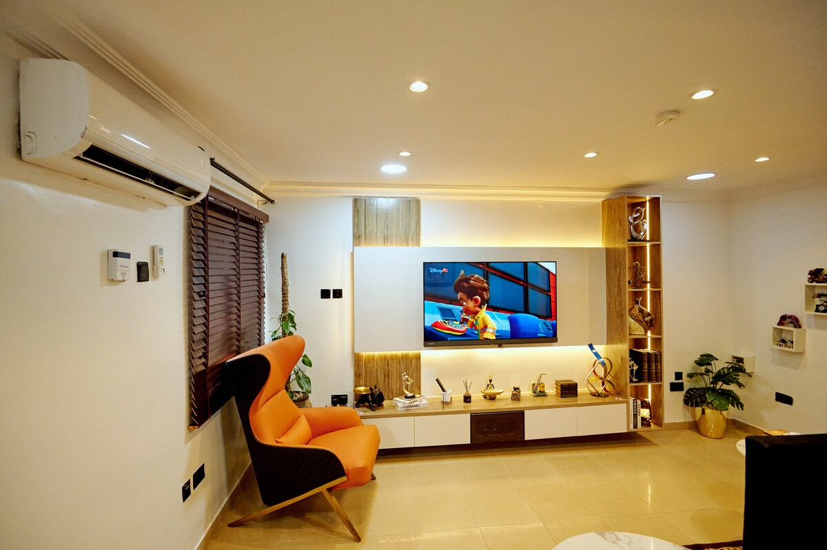 The apartment is excellent for business trips, it comes with high-speed WiFi, a suitable sitting room, and a kitchen in a quiet, cozy neighborhood. Equipped with 24hrs electricity, a kingsize spreadable bed for two, it is home away from home. It is fully dedicated to the guest in an easily accessible location within a 3-minute drive to places like cinemas, shopping malls, pharmacies, and restaurants.