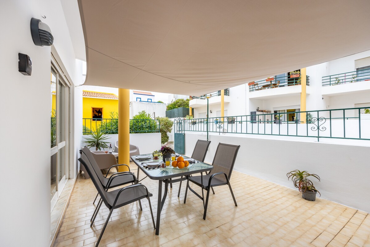 Ubicado en la planta baja de un edificio de 3 pisos. Tiene dos entradas. La entrada principal y la entrada por la terraza privada del apartamento. A través de la entrada privada, tenemos la cocina equipada, luego entramos en el pasillo para acceder a la sala de estar, el dormitorio y el baño. Es un departamento de 88 pies cuadrados. Este apartamento ofrece las condiciones ideales para unas agradables vacaciones en el centro histórico de Lagos, así como la comodidad de un rápido acceso a playas, supermercados, restaurantes y bares.