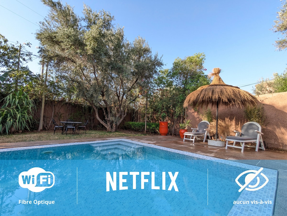 🌟 Vivez l’exclusivité à deux pas de Marrakech ! Plongez dans un havre de paix privé, entouré d’oliviers, à seulement 10 km de Jemaa El-Fna et de l’aéroport. Réservez pour bénéficier de tout l’espace à vous seul : salon climatisé, cuisine équipée, 2 chambres, salle d’eau/WC et terrasse avec cuisine d’été. Proche des golfs Noria et Argan et de la mosquée (30 m). 📅 Réservez maintenant ! Ne manquez pas l’opportunité de vivre une expérience unique avec un accès exclusif à tous les espaces.