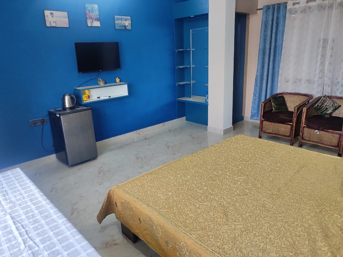 lugar completo (dos habitaciones, una cocina, un baño) Esta habitación ofrece una cómoda configuración con una cama tamaño king y una cama tamaño queen en un diseño adjunto. Viene con cocina y baño privados, está situado en la planta superior para mayor privacidad y vistas y un inversor privado. Mercado local - 1 minuto a pie Estación de tren de Banipur - 3 km La cocina de inducción es solo para cocinar con poco fuego y no funcionará durante los cortes de energía del departamento de electricidad.