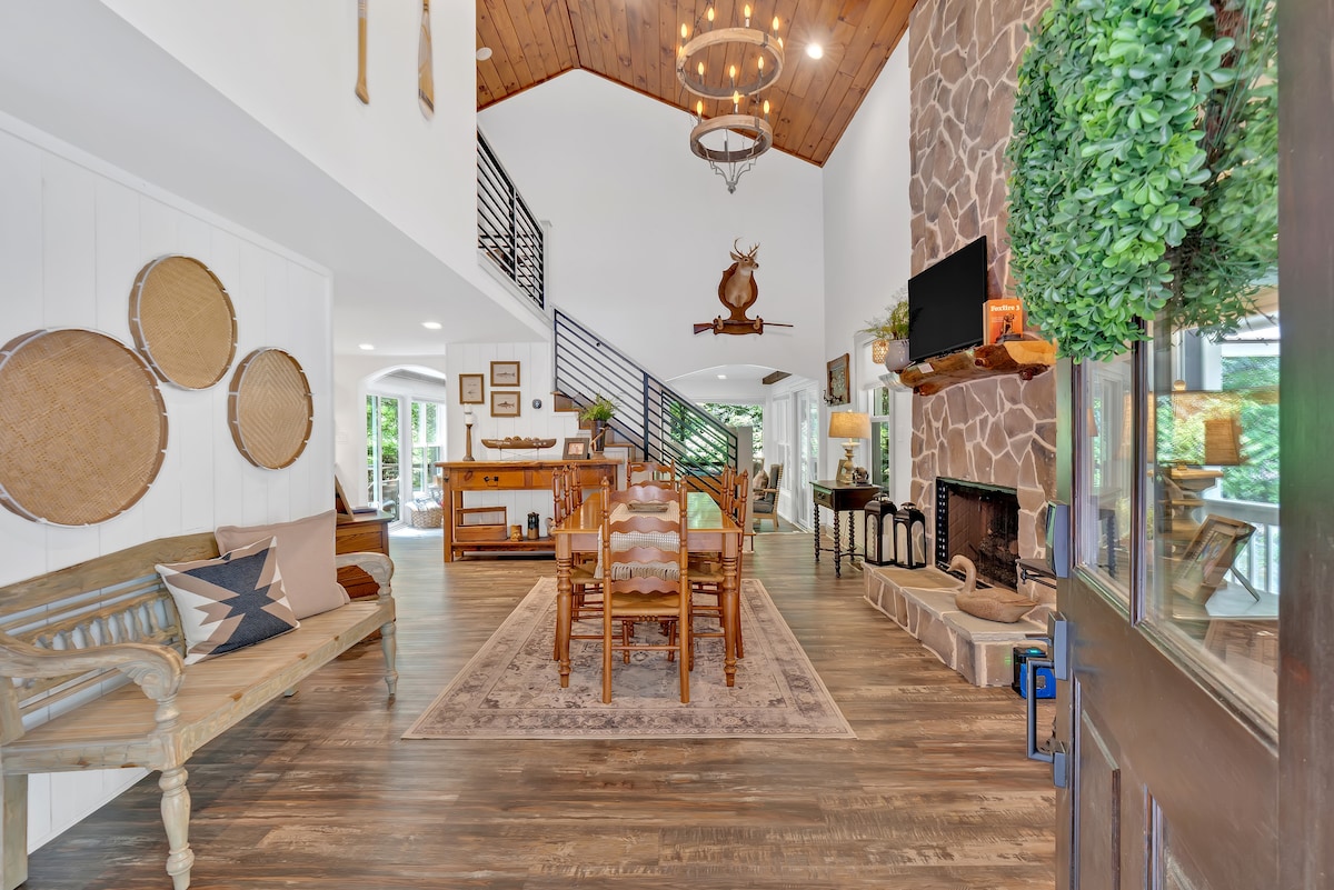 Disfruta de vistas al lago y a la montaña en este oasis actualizado entre los árboles. Tanto si buscas una aventura al aire libre como una escapada rejuvenecedora, ¡lo tenemos todo! Situado en un lago de cinco acres, disfruta del muelle privado y del uso de nuestras dos tablas de remo y canoa. Después de un día de senderismo, desconecta en el jacuzzi y la sauna. Hay mucho espacio para reunirse tanto en el interior como en el exterior. Esperamos que disfrutes de todas las comodidades modernas mientras te reconectas con la naturaleza. ¡A solo 12 minutos del centro de Ellijay!