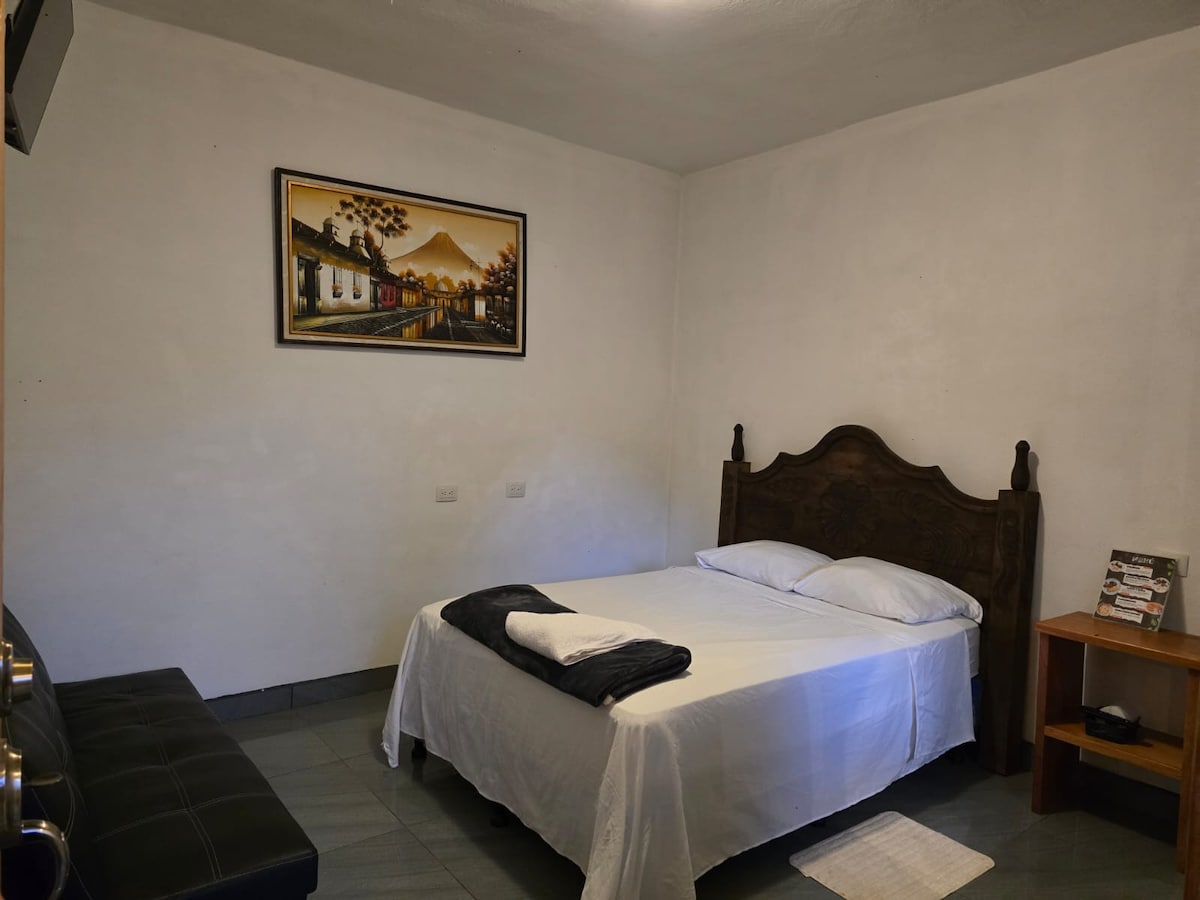 Hospédate en una amplia habitación con dos camas matrimoniales, ideal para 2 a 4 personas. Incluye desayuno gratuito en el rooftop con espectaculares vistas al lago y volcanes. Disfruta de atención 24 hrs, recepción dedicada y espacios modernos diseñados para tu comodidad. La habitación cuenta con cafetera con café y té, agua de cortesía, secadora y baño privado. Perfecta para familias o grupos que buscan confort y una experiencia única en Panajachel.
