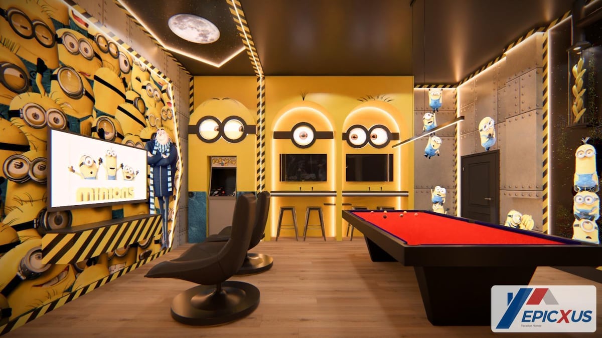 2 habitaciones, capacidad para 6 personas, piscina, jacuzzi, sala de juegos, a 10 minutos de Disney