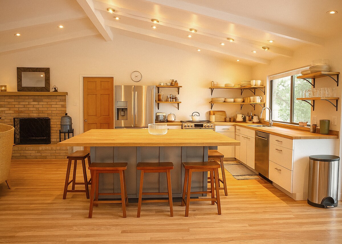 ¡Bienvenido a La Lomita, un refugio íntimo para dos en Wimberley! Ubicada sobre las copas de los árboles, esta encantadora cabaña ofrece comodidad y unas impresionantes vistas a la ladera. El interior cuidadosamente diseñado combina el encanto rústico con el estilo moderno. Presta atención a la encantadora vida silvestre y a un amanecer espectacular. La cocina bien equipada y la acogedora sala de estar completan este mágico entorno. Relájate, rejuvenece y vuelve a conectar con la naturaleza. ¡Experimenta la magia de Wimberley desde el mejor asiento de la casa!