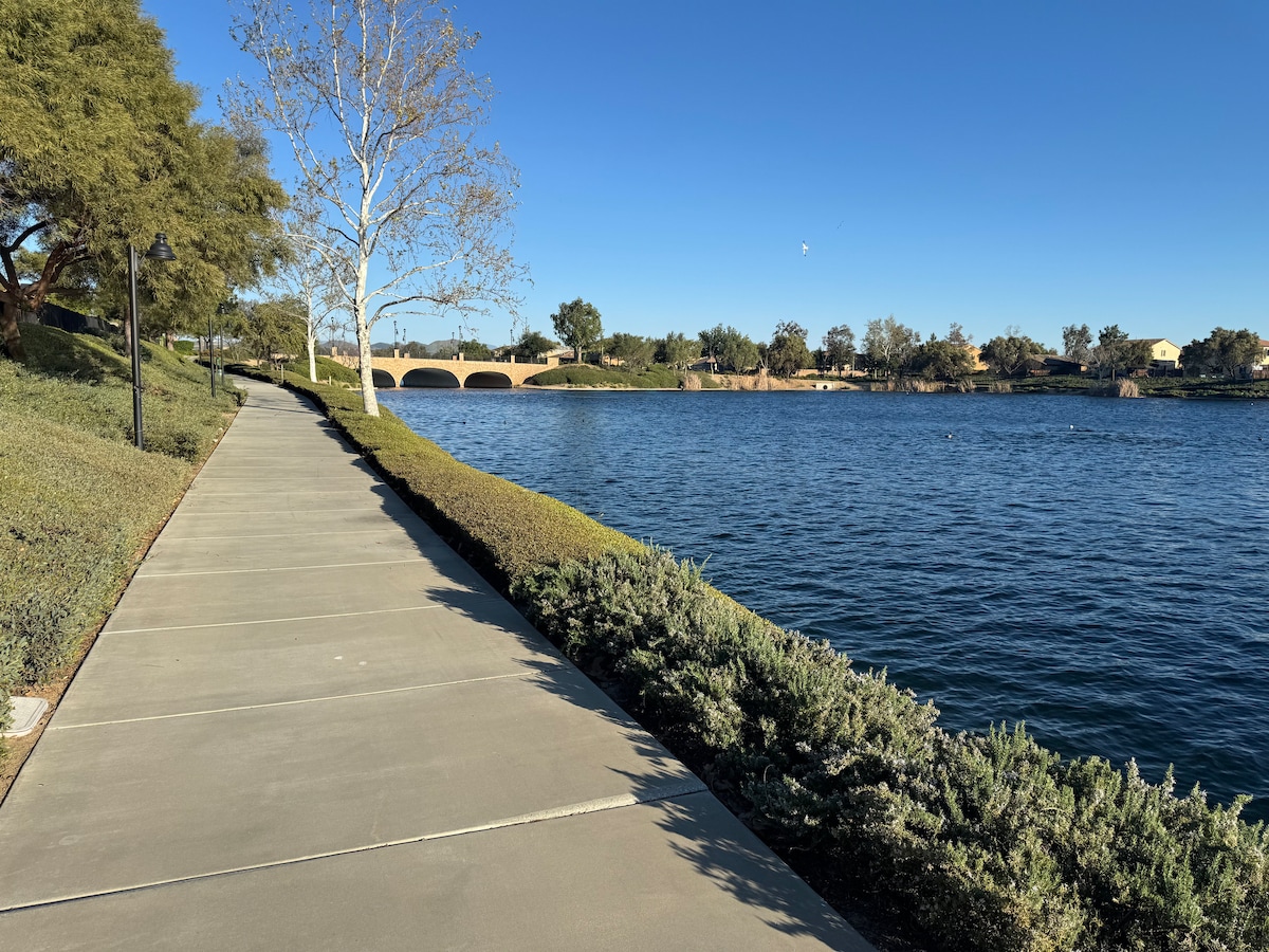 Propiedad tranquila diseñada para mostrar las increíbles vistas al aire libre del lago Elsinore, las montañas de Santa Ana y las hermosas puestas de sol. Toda la casa del lago ofrece total privacidad sin vecinos a ambos lados. La propiedad está totalmente vallada para que los niños y las mascotas deambulen sin preocupaciones. A solo 20 minutos de la región vinícola de Temecula y a 45 minutos de las hermosas playas del condado de Orange. Disneyland, Sea Wold, Legoland cerca. La comodidad existe aquí mismo en Peaceful Paradise Lake House.