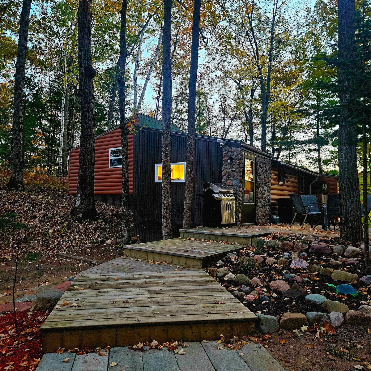 Escapada remota, tranquila, silenciosa y privada en 5,8 acres a orillas de Elk Creek; ¡a solo 1,5 horas de las Ciudades Gemelas! Este arroyo es conocido como un arroyo de truchas de clase 1. Los huéspedes pueden disfrutar de pesca, hacer turismo, piragüismo y kayak en el río Chippewa o el lago Elk, ciclismo, senderismo, todoterreno/utv y senderos para motos de nieve en las cercanías también. Entra en un mundo de paz y calma en lo profundo del bosque. Esta es una hermosa cabaña rústica que ha sido bellamente restaurada. Permiso emitido e inspeccionado por el condado de Dunn.