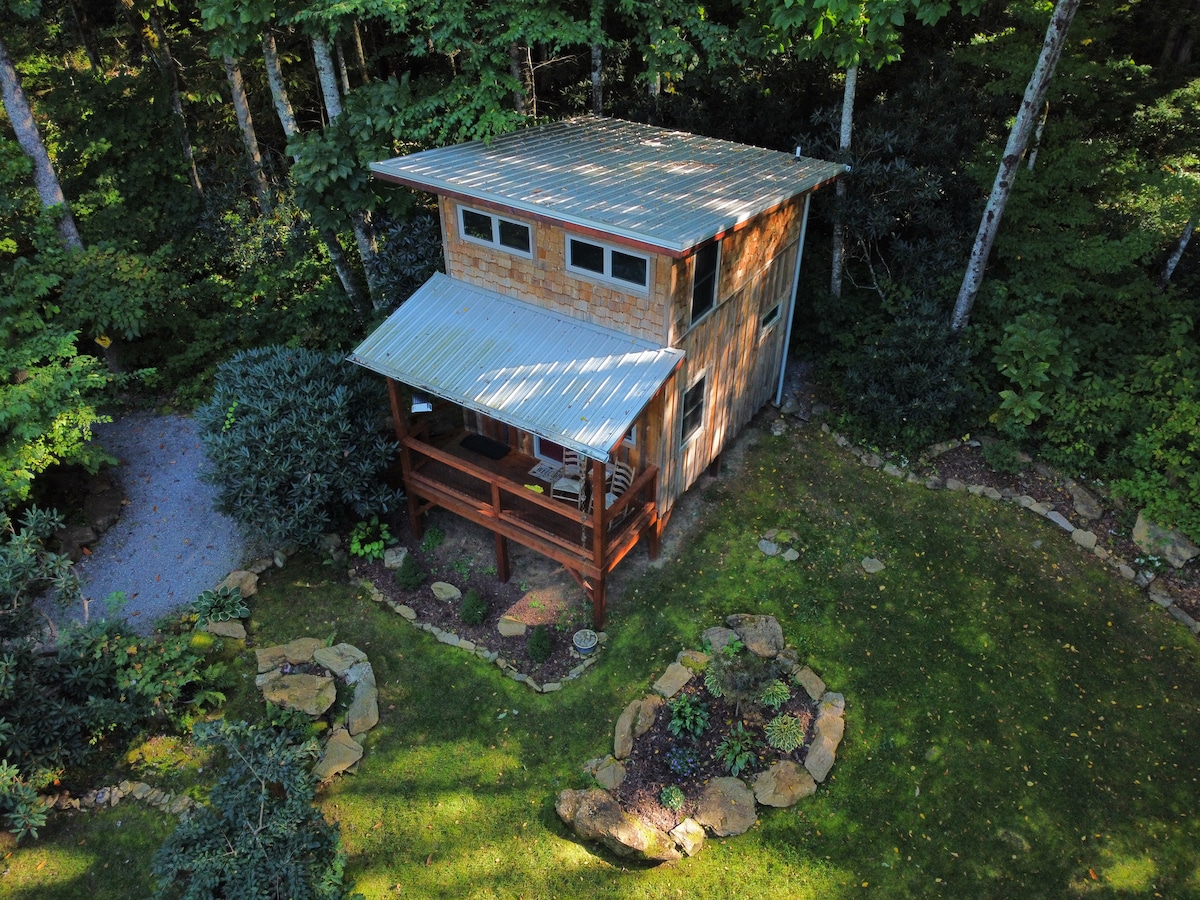 Impresionantes vistas de Cold Mountain y Mt Pisgah te dan la bienvenida desde el gran porche de esta cabaña limpia, que admite mascotas y está en la comunidad de Bethel. Esta cabaña de 12'x20' con pinos se encuentra en 5 acres cuidados rodeados por un arroyo. Disfruta de todas las actividades que te ofrece el oeste de Carolina del Norte. Esta pequeña cabaña está cerca de rutas de senderismo y ciclismo de montaña, cascadas y la carretera Blue Ridge. Está a 30 minutos de la ecléctica Asheville o a 15 minutos de la tranquila Waynesville.