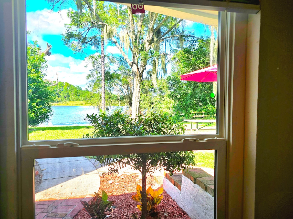 Pequeño estudio con entrada independiente para mayor privacidad y vistas increíbles al lago. ¡Alquiler ilimitado de 2 kayaks azules incluidos durante la estancia! A poca distancia del supermercado Windixie, del centro del lago Mary, de restaurantes, de centros comerciales, de entretenimiento y de Dunking Donuts. Las zonas comunes fuera del estudio son compartidas. La propiedad está en el lago Mary, enfrente del club de campo, cerca de Sanford, Boombah Sports, Orlando Fl. A 30 minutos de Daytona Beach. Cerca de los manantiales de Wekiva. Para ir a Disney, fácil acceso a la I-4 y 4-17.
