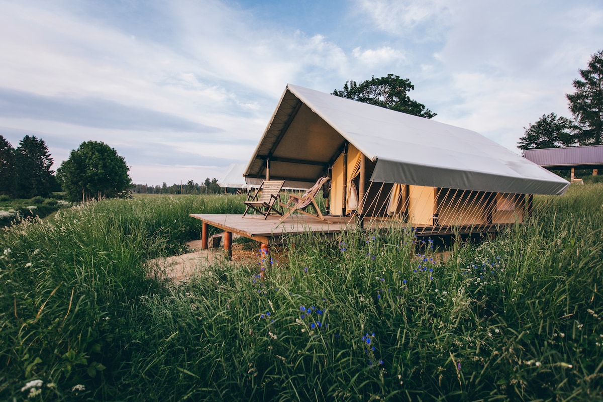 Tienda de campaña en el campo cerca de Tõrva