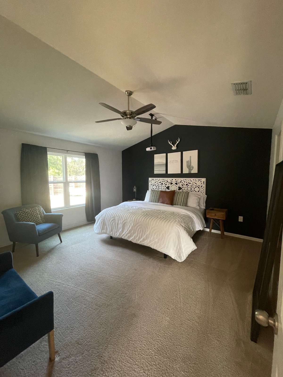 Disfruta de la comodidad y el estilo en este encantador espacio apto para mascotas, perfecto para escapadas cortas. Disfruta de la privacidad de tu propia entrada, junto con una ducha completa, acogedora sala de estar, comedor y dormitorio, todo dentro de un diseño conveniente. El patio trasero totalmente vallado, compartido con otros inquilinos, cuenta con una parrilla y una chimenea, ideal para relajarse por las noches al aire libre. Si bien el espacio incluye una pequeña cocina, el acceso a la casa principal compartida puede estar disponible si necesitas una cocina completa o lavandería.