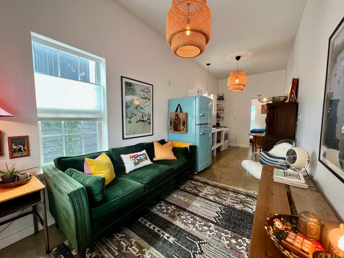 ¡Te damos la bienvenida a nuestra encantadora casa rancho MCM, una verdadera joya en el corazón de Austin! Esta casa modelo de 1959 cuenta con una decoración retro que te transportará al pasado. Ubicado en el moderno barrio de St. Elmo, en el corazón de Austin, Texas Los perros y los niños son bienvenidos. Mantenemos un lugar súper limpio, 2g de fibra wi-fi, sin cámaras y entrada sin llave. Y esperamos poder hospedarte en Austin 💙💙