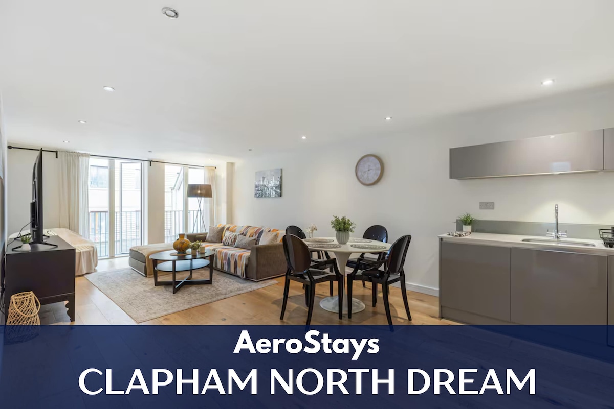 ✨ Introducing Clapham North Dream brought to you by Aerostays. Check out our online reviews. ✨ HIGHLIGHTS: 🛏️ Two beds & 2 baths (1 x ensuite) — One with a 55" 4K smart TV 🏙️ Communal sky terrace with panoramic city views & private balcony to living room and en-suite bedroom 🎮 500+ classic arcade games — the ultimate retro gaming apartment in London 📺 A massive 65" Smart TV for cosy movie nights in