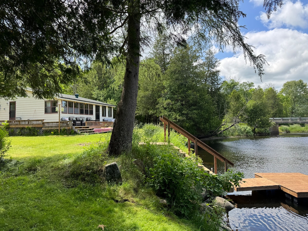 Located on a bend in the river you will feel surrounded by tranquil natural beauty. The entire front of the house is windows, looking out at the river and boasts a very well appointed kitchen, sauna and hot tub. This is a perfect getaway for up to 6 people. In the summer you can fish and swim right off the end of the dock on the property. In the winter go from the fire pit to the sauna to the hot tub and if you’re really brave, cold plunge in the river! A true spa-like feel.