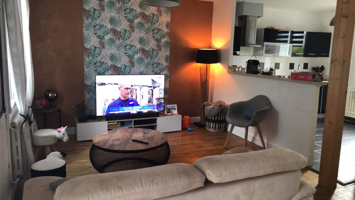 Bonita casa adosada reformada y decorada con buen gusto, tranquila en un callejón sin salida cerca de las comodidades. 1 dormitorio en el 1er piso con una cama de 160 y sofá cama 2 camas (140) en la sala de estar. Cocina equipada con una placa con campana extractora, nevera y congelador,un microondas y una cafetera (filtro). Isla para las comidas y sus 4 sillas de bares. Gran televisor en la sala de estar. Cuarto de baño doble lavabo y ducha italiana. WC separado. Aspiradora, plancha. Wifi
